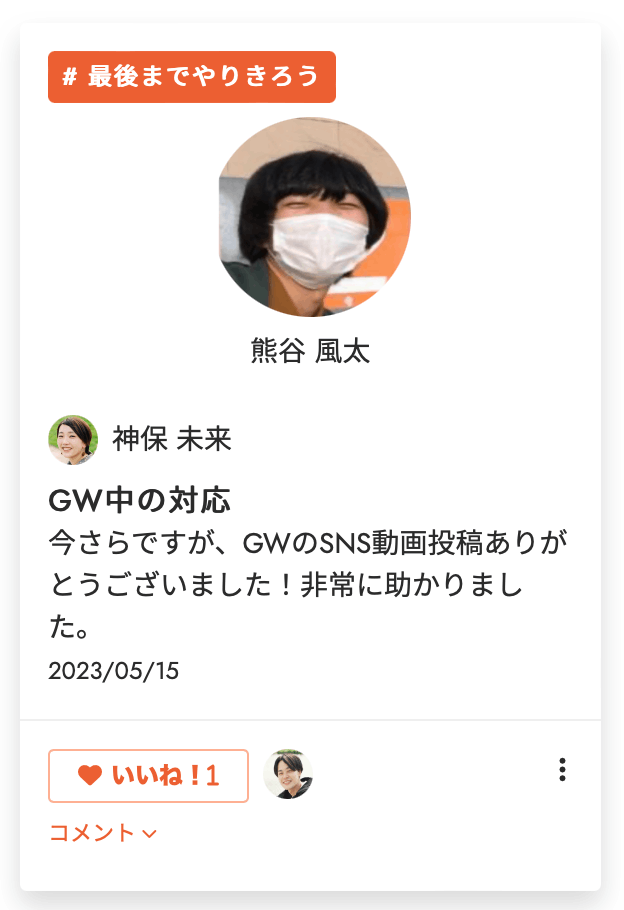 例えば、事業部を超えて案件を見つけてきたり、良いシステムを紹介したりすると、「#チームの成果に責任を持とう」というタグで称賛カードをもらう人がいます。他にも、新メンバー歓迎会の準備を進めてくれた人へのささやかなお礼として「#とにかく楽しもう」タグの称賛カードが送られているのも見ました。「称賛」と言っても、褒めるというよりは「ありがとう」「あなたがいてくれて助かりました」というメンバーへの感謝とチームへの貢献を伝える意味合いが強いです。