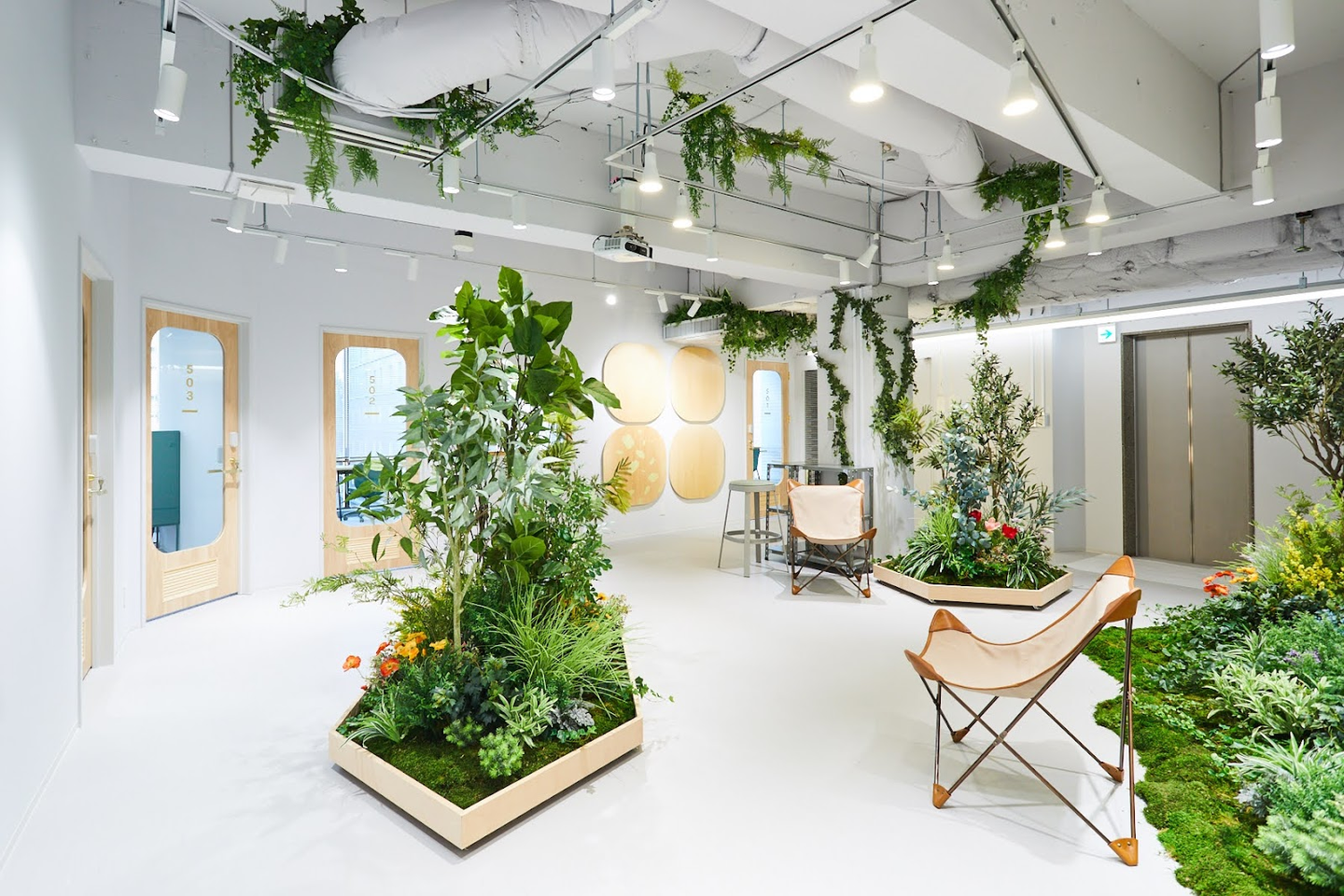 cotreeオフィスのある5階エレベーター前に広がる緑あふれる空間(撮影:Kazuo Yoshida)