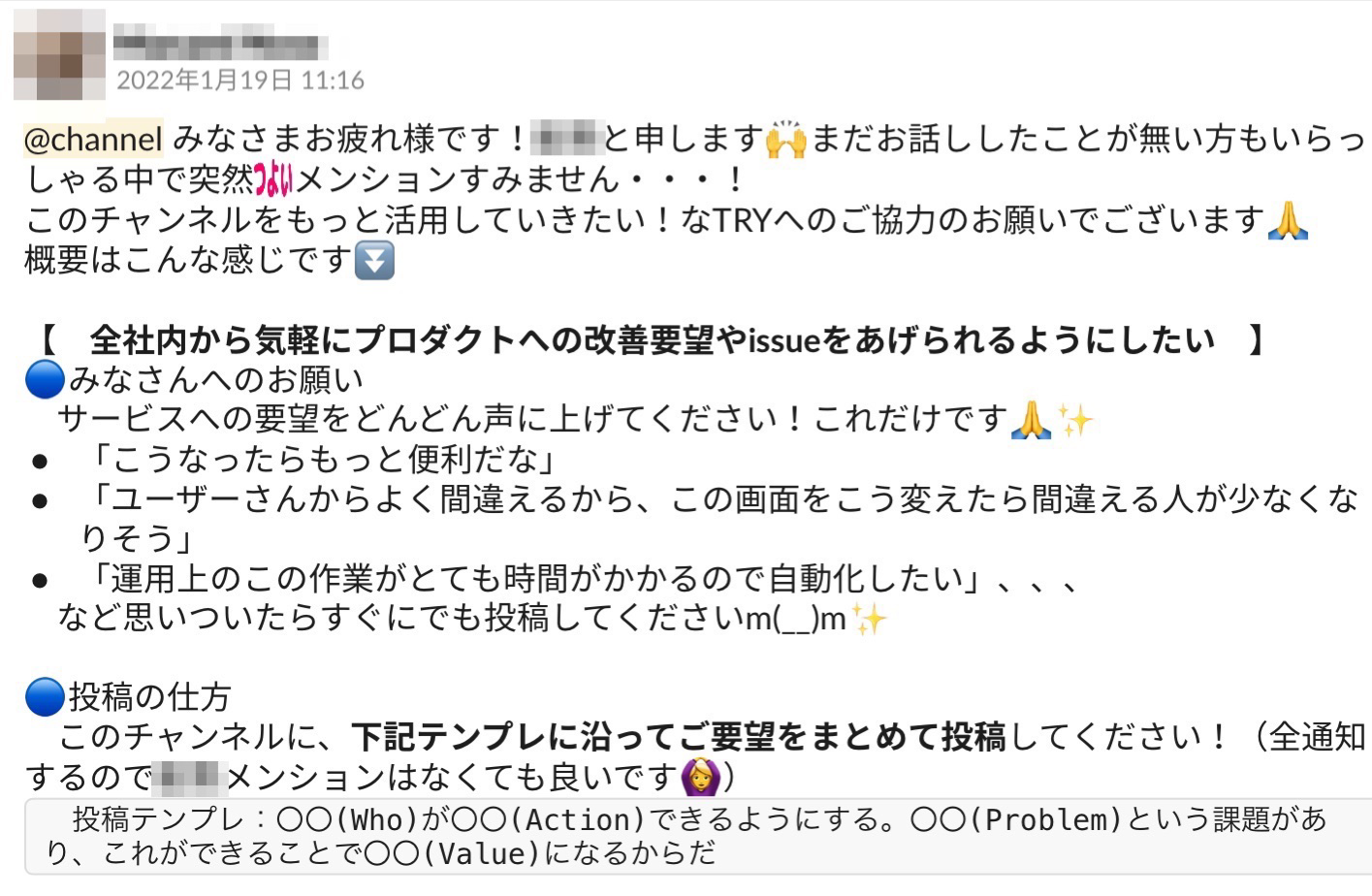 そこで投稿内容テンプレートを定めることにより、実装までの対応がしやすくなった上、テンプレに沿って気軽に投稿しやすくなり、チャンネルが活発になりました。