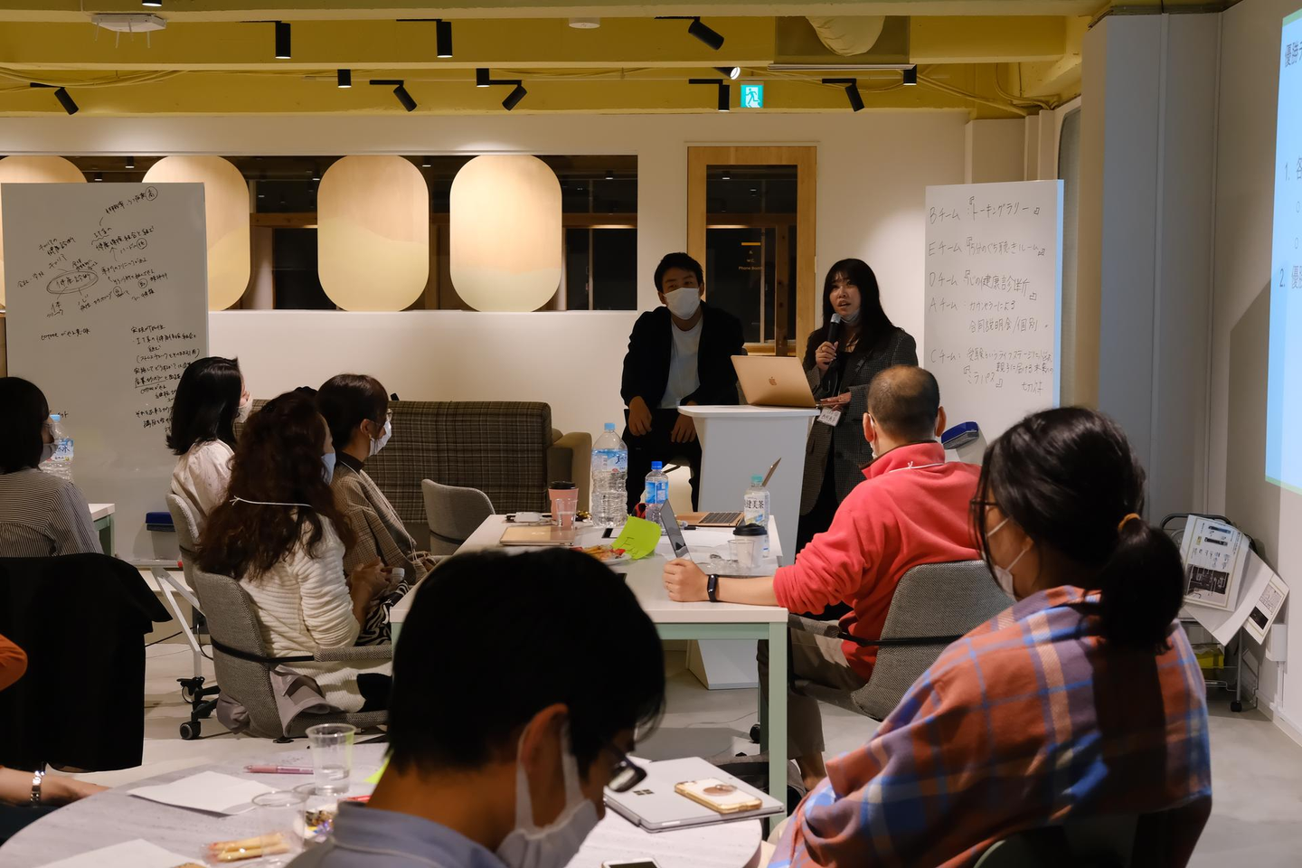 全5チームが発表を行いました。「カウンセラーによるオンライン合同説明会・個別説明会」「話せば話すほどヘルスデータ&ポイントが貯まるトーキングラリー」など、幅広いアイデアが出ました。