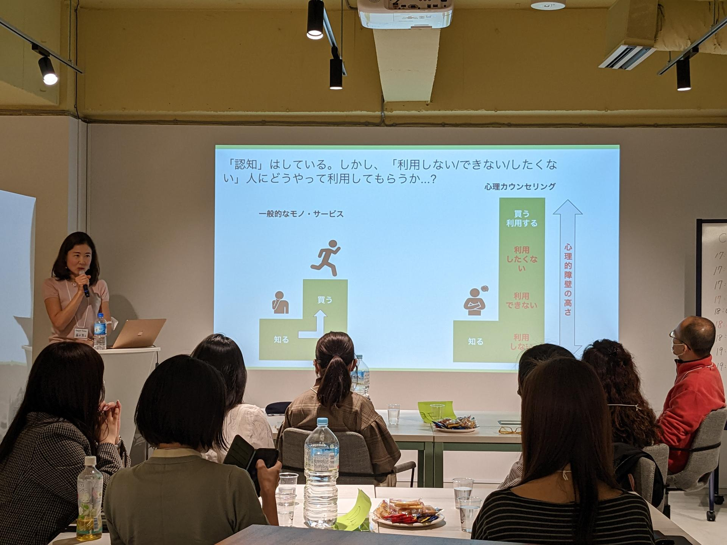今回は、「日本人のカウンセリグへの心理的ハードルを下げるためにできることは?」というテーマで、アイデアを競いました。審査員は、代表の西岡と取締役の古田が務めました。