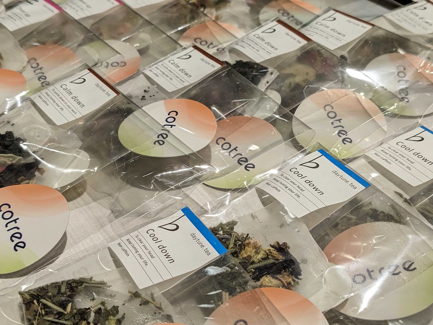 最後には、プチギフトとしてハーブティーによるチューニング習慣で生活にリズムをつくるワークライフスタイルブランド「daytune.(デイチューン)」さまのハーブティーと、2023年3月に新しくなったミッション・ビジョン・バリューとともに生まれ変わったステッカーをお渡しさせていただきました!ぜひほっと一息つく時間になれば幸いです。