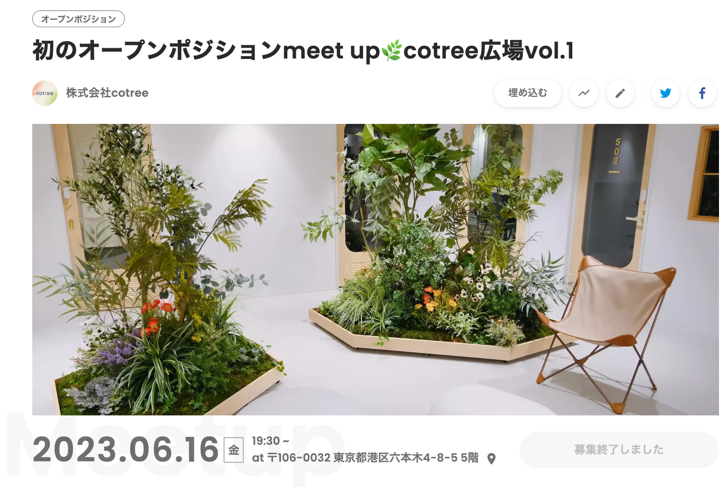2023年6月16日にcotree初めてのオープンポジションmeet up「cotree広場 vol.1」をオフィスにて開催しました!今回の記事では、当日の様子をレポートします。