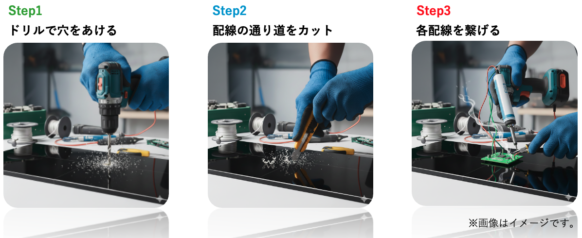 そして色々と議論した結果、アクリルボックスを購入し下記のステップで直接取り付けようというシンプルな案に辿り着きました!