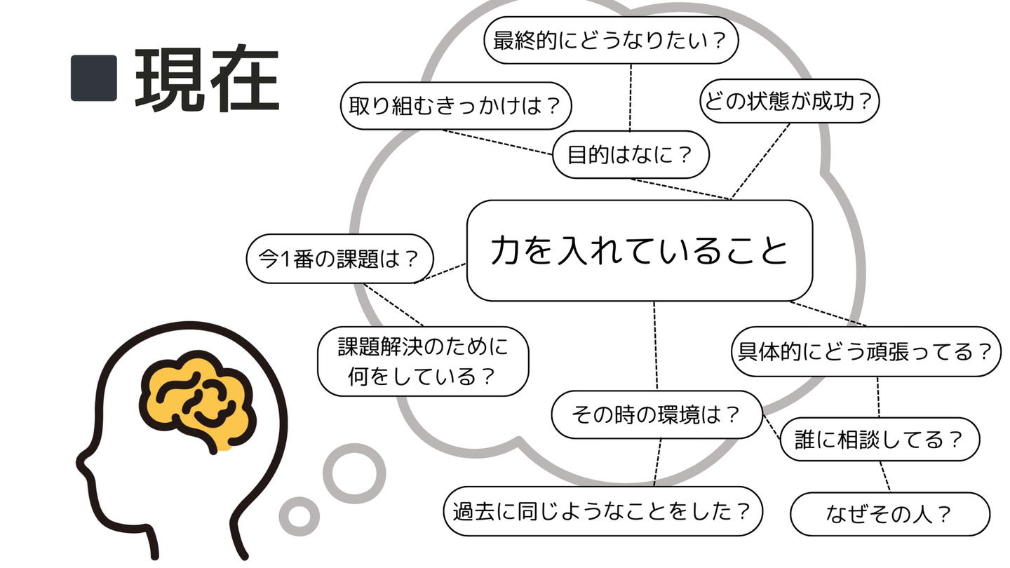 先ほどの質問と似ていると感じた方もいるかもしれません。実は「現在」の部分でも知りたいことはほぼ同じです。皆さんがどんな動機でどんな行動をしているのか。トラブルが発生したとき、どのように対応するのか。現在の行動を通じて、皆さんの価値観や思考をより深く知りたいと考えています。