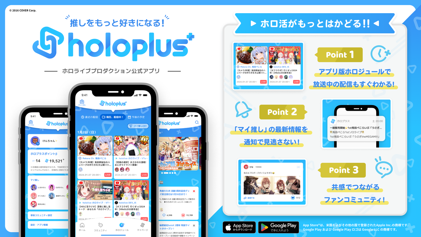 『推しをもっと好きになる!』ホロライブプロダクション公式スマートフォンアプリ『ホロプラス』の特設サイトです。