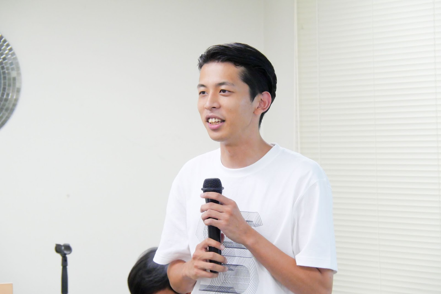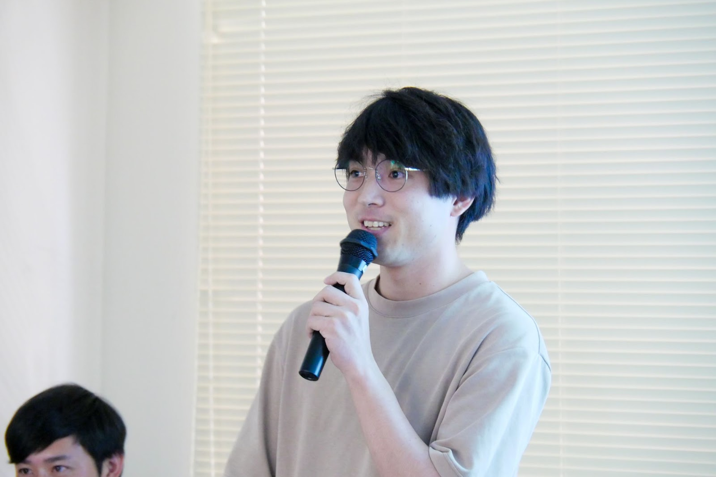 事業共有のあとは、今回が斫会初参加となる新メンバーの自己紹介タイム! 改めて、入社ありがとうございます!