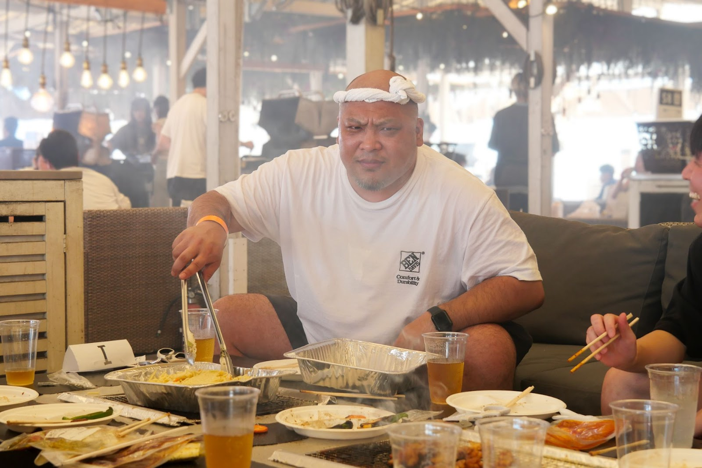 頭を使った後はエネルギー補充のお時間です。向かうは都内最大級のビーチリゾートスタイルバーベキュー場「THE BBQ BEACH in TOYOSU」!