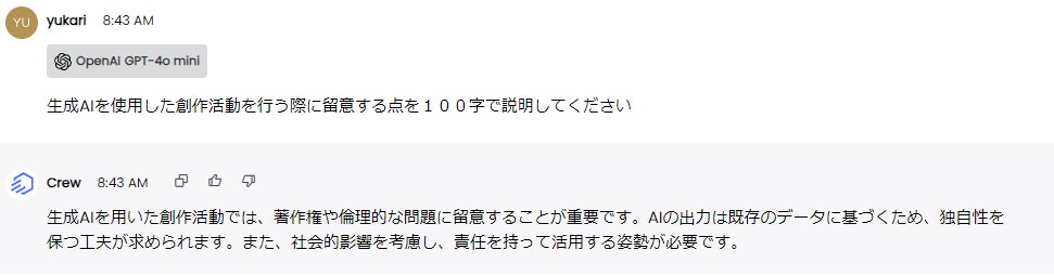 株式会社クラフター(本社:東京都港区、代表取締役社長:小島舞子、以下「クラフター」)は、社内資料参照の法人向け生成AI「Crew(クルー)」を提供しております。「Crew(クルー)」にて、2024年7月18日に米OpenAI社により発表された新たなAPIモデル「GPT-4o mini」への対応を7月末に完了いたしましたことをご報告いたします。