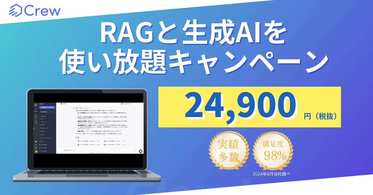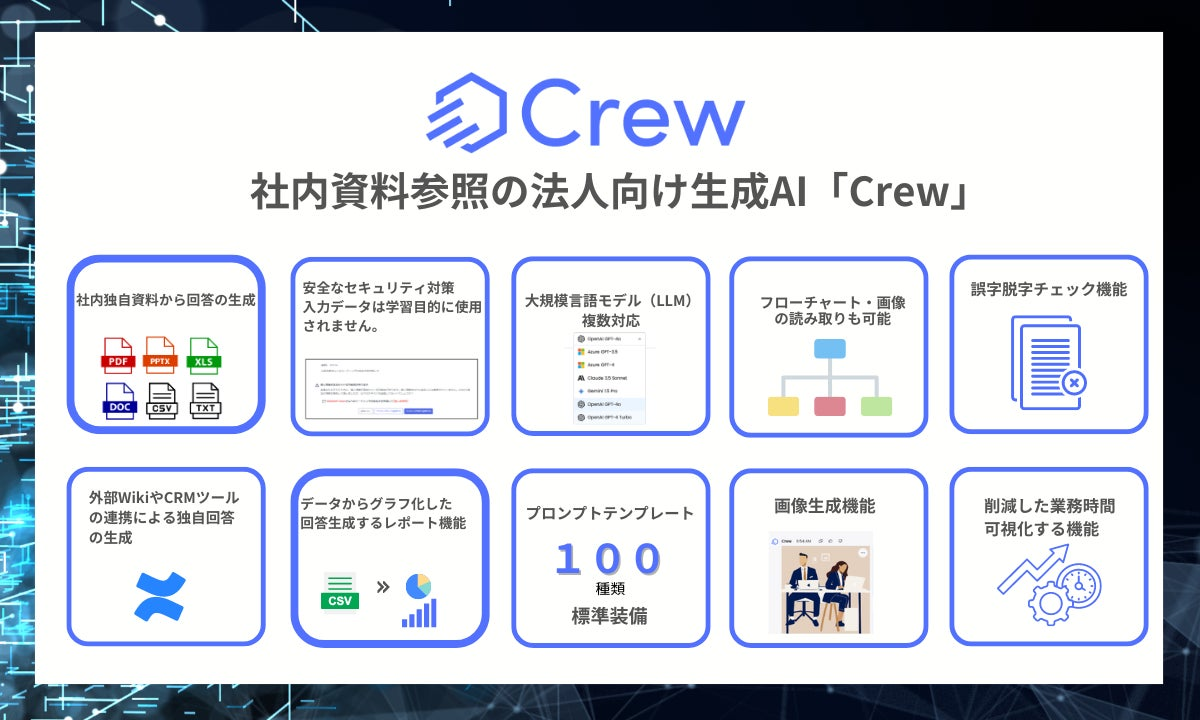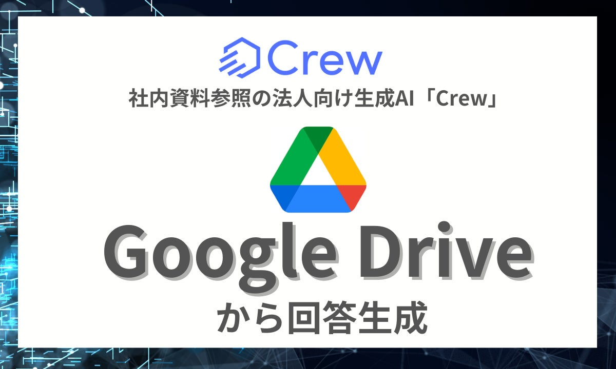 【先行予約開始】社内資料参照の法人向け生成AI「Crew」、 RAG機能を搭載し、Googleが提供するオンラインストレージ「Google Drive」と連携させる機能を提供開始