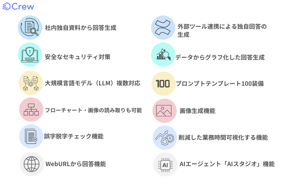 【Crewが選ばれる理由】✔ 企業独自の資料から回答できる