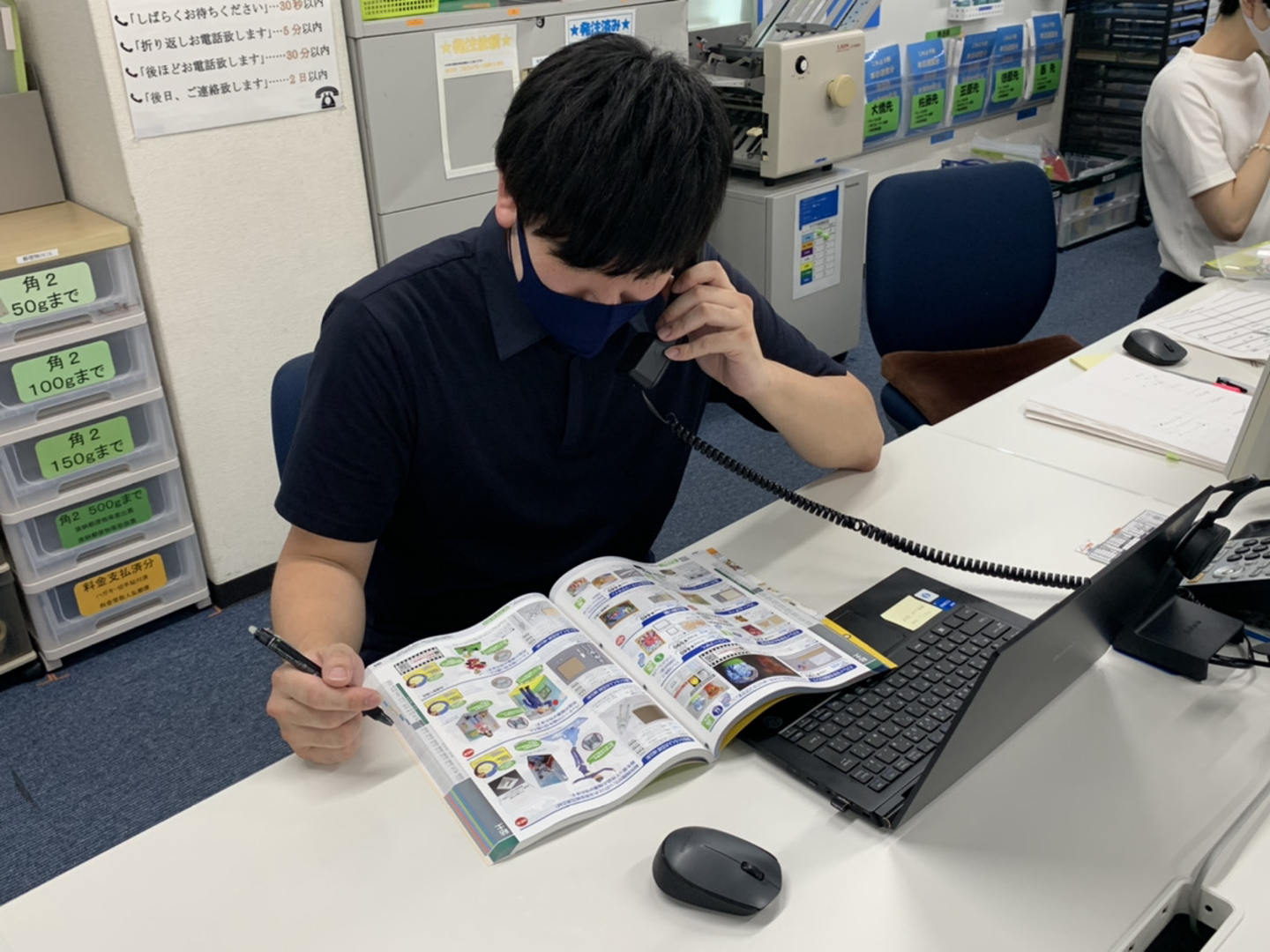 現在は、小中学校向けの教材を取り扱っている全国の書店や文房具店に対して、サンワの工作キットや運動会や卒業式などで制作するイベント向けの商品などを提案しています。全国各地にお客様がいるので、一人ひとりの担当エリアが広く、私は北海道、大阪、九州、沖縄エリアを担当しています。この業界の商戦期は年に3回、新学期スタート前にあたります。出張にもそのタイミングで行くことが多くなりますが、 残念ながら今はコロナ禍で直接行くことが難しいため、オンラインや電話中心で行っています。商品数が多く、魅力を伝えきるのに大変な部分もありますが、当社には装丁が綺麗で見やすいと評判のカタログがあるので、ご案内もしやすいです。カタログを見ながら提案し、まずは見本品を発注。その後代理店から先生方にご説明いただき、気に入っていただければ本発注という流れになります。