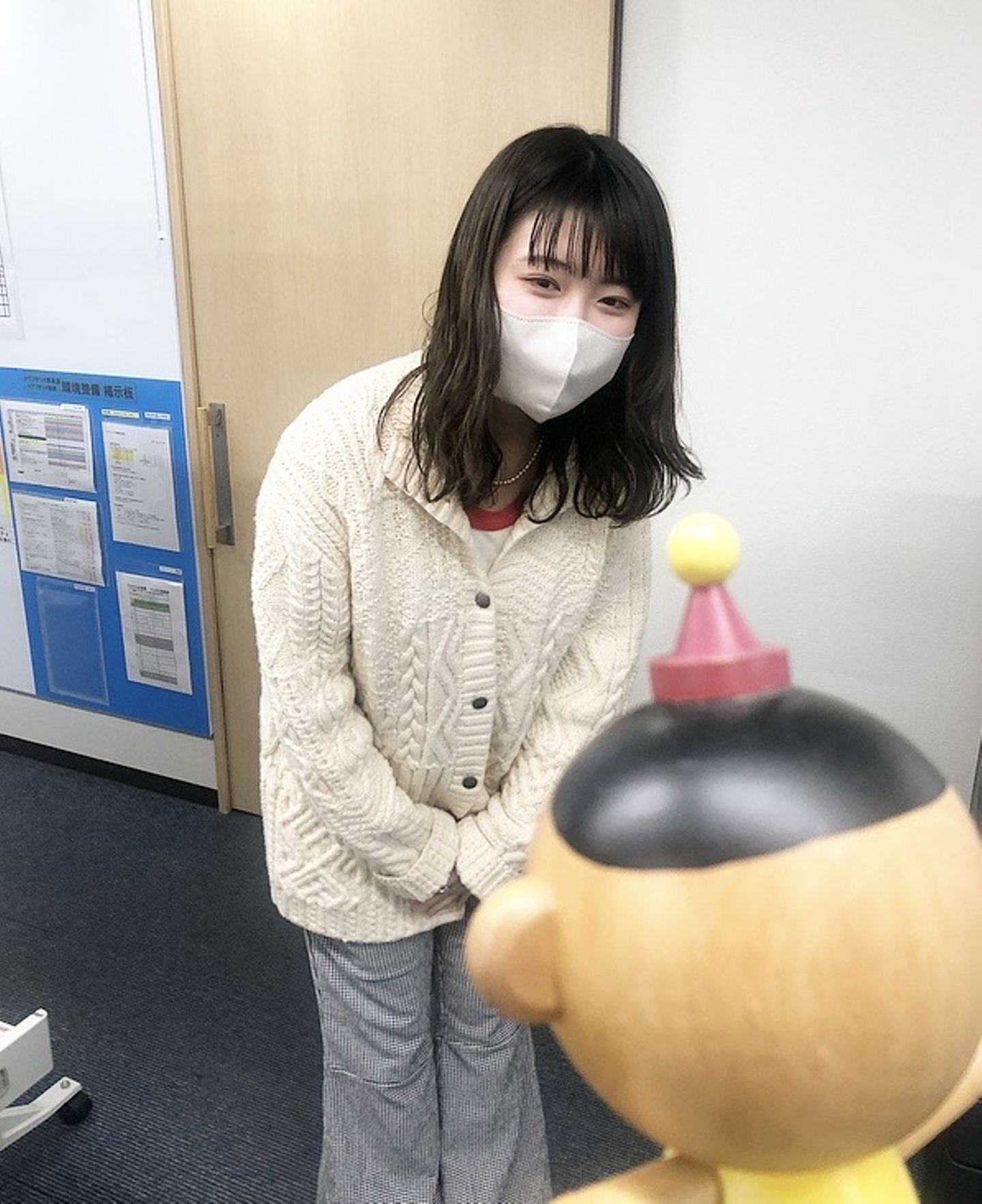 長田さん「テリオくんありがとう!電話対応が未経験の私でしたが、マニュアルもあり、先輩が丁寧に