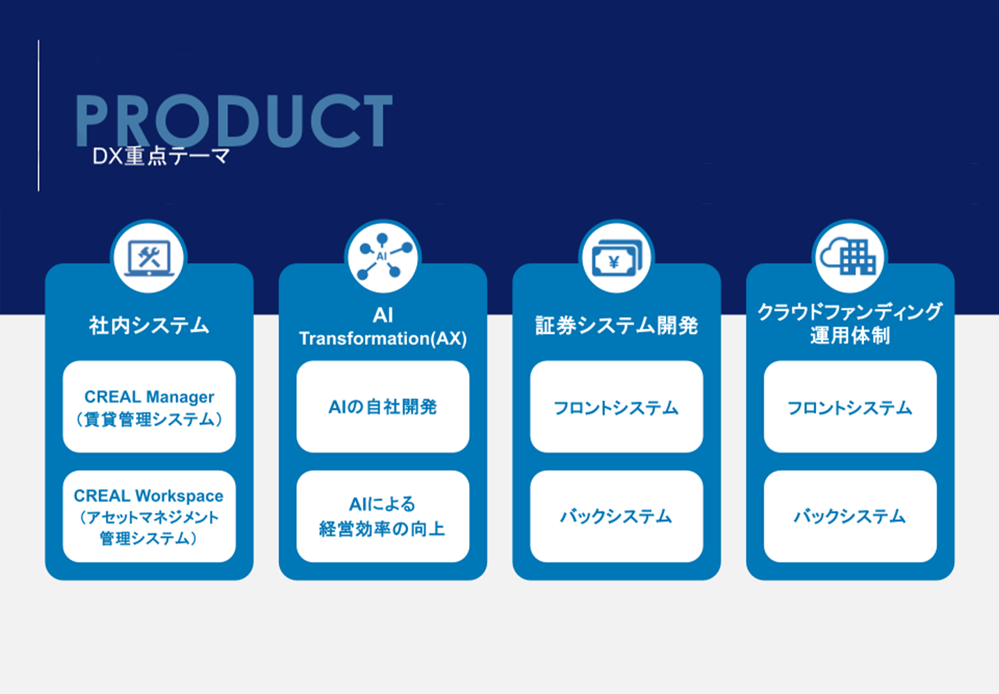 私たちは、自分たちの「弱み」を隠しません。それは「これからの伸びしろ」であり、皆さんと一緒に取り組みたい「挑戦課題」だと考えているからです。具体的には2つあります。1つ目は「AIの活用」です。ただ単にIR(投資家向け情報)のために流行りの技術を使うのではなく、本気で「会社の利益を生み出せるAI」を事業に組み込むことを目指しています。2つ目は「プラットフォームのアップグレード」です。現在の『CREAL』の仕組みを、今後展開する新システムの基盤としても耐えうる、より強固で拡張性の高いシステムへと進化させる必要があります。これらは簡単な挑戦ではありませんが、だからこそ技術者としてワクワクするフェーズだと感じています。