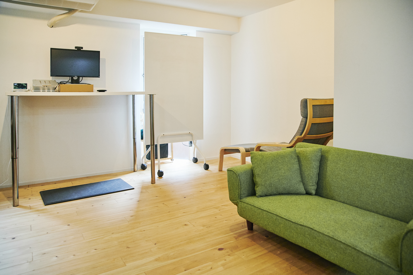 奥のカウチはお昼寝用でも利用可能。ついたてを立ててプライバシーを守ります。