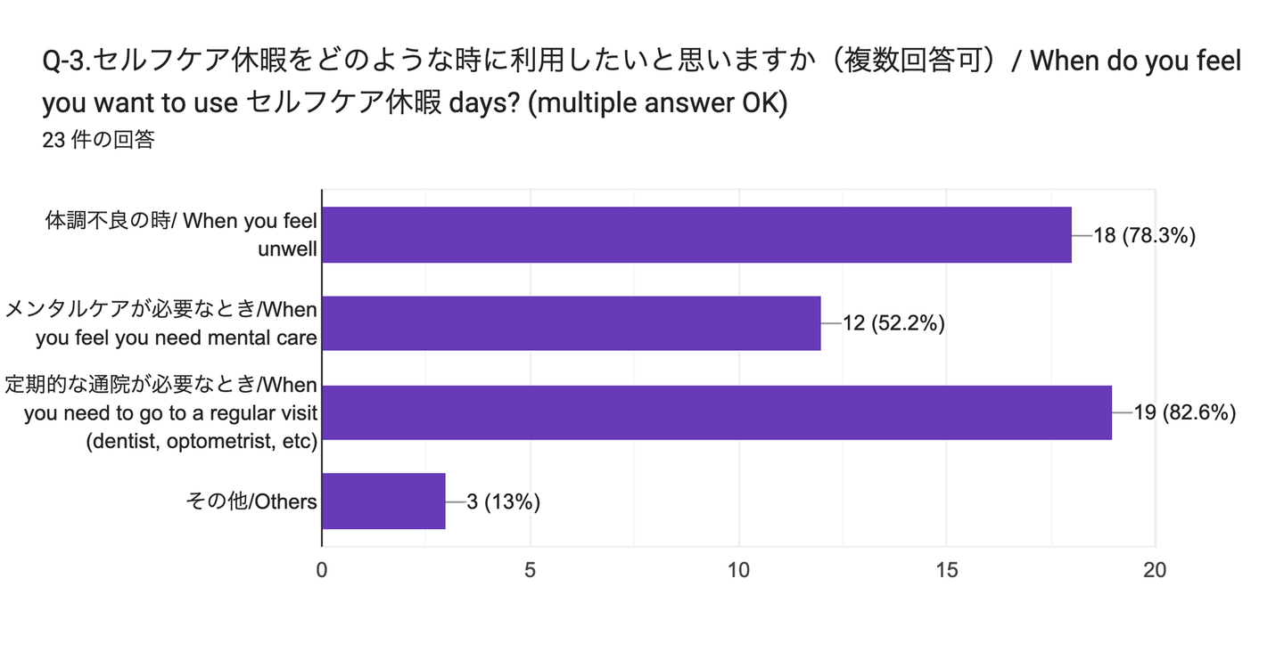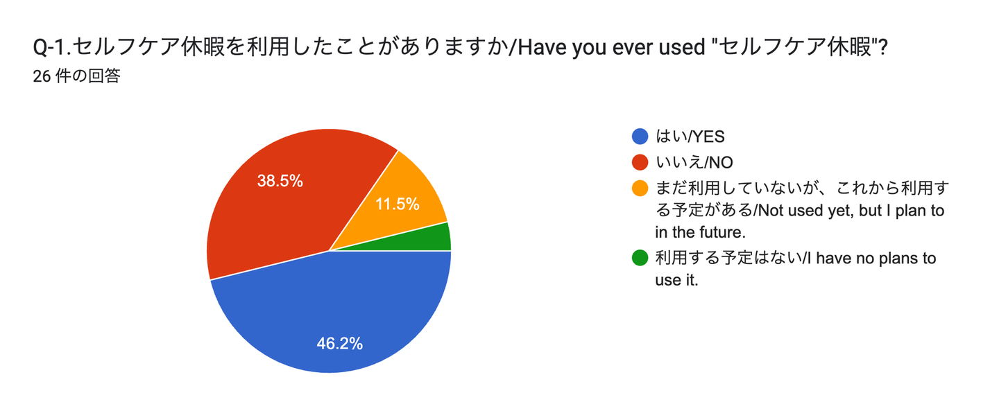 セルフケア休暇がスタートして4ヶ月ほど経過したこのタイミングでメンバーがどのように休暇を利用しているか、アンケートを実施したので今回はその結果をシェアします!(2023.08実施)