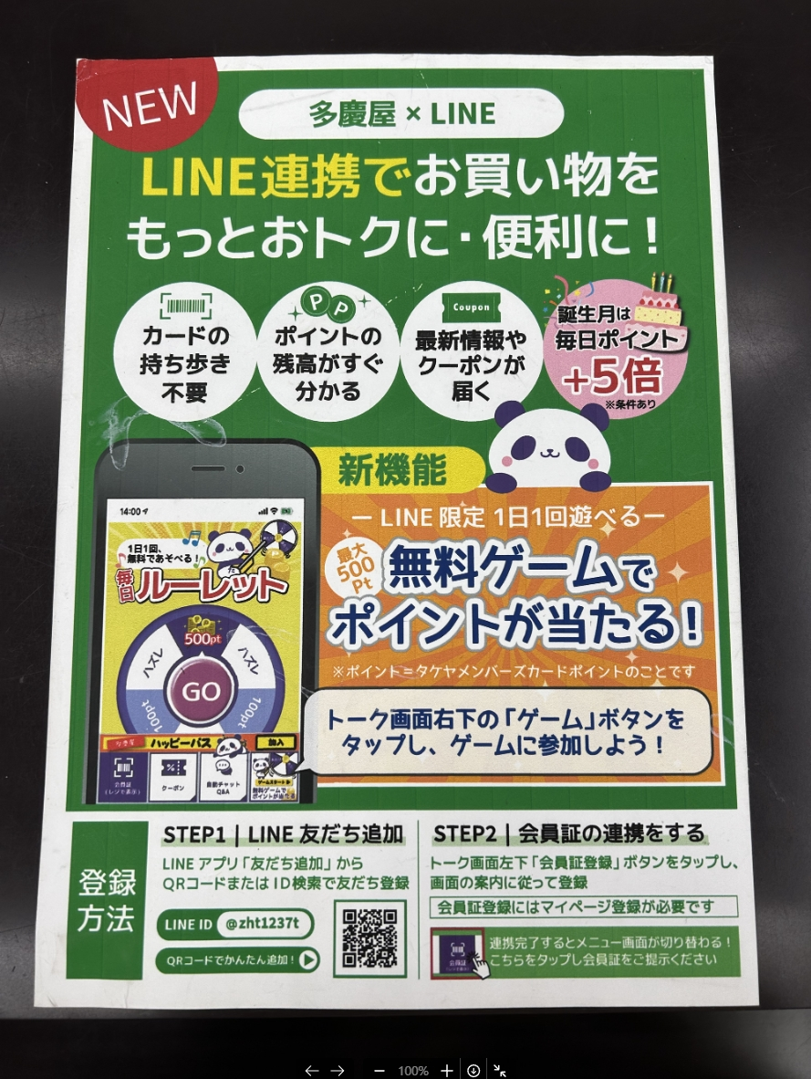 このようなチラシを店内に設置することで、オフラインでの新規顧客獲得にも繋がっています。
