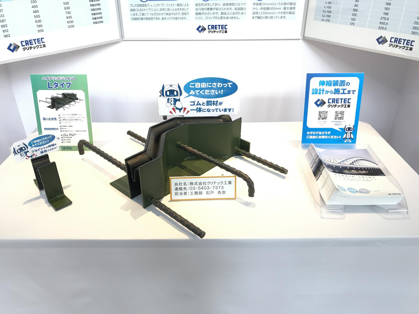 ブースのテーマは『橋梁の長寿命化に貢献する伸縮装置「ハイブリッドジョイント」』。
