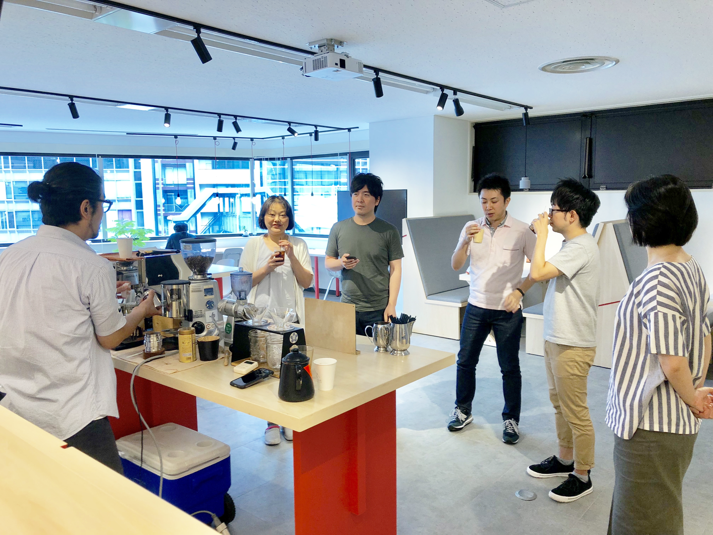月に一度、代官山でコーヒー店を営むプロのバリスタさんにCrevoに来ていただいて、できたてのコーヒーを提供していただくという制度があります。