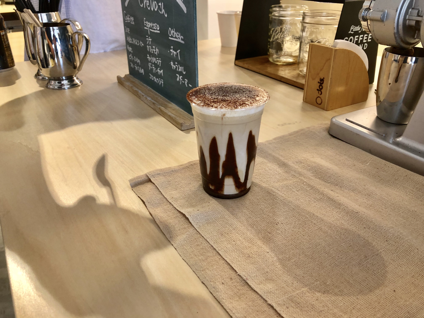 メニュー以外も珈琲が飲めない方や好みのフレーバーにオーダーメイドで作ってくれるところが凄いです!下の写真は「カフェモカS」という即興で作ってくれたコーヒー。ノン珈琲、チョコレート多めでオーダーしたドリンクで非常に美味しかったです!
