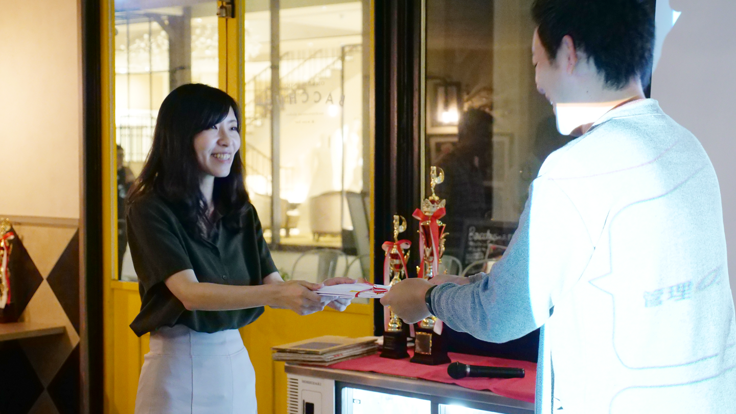 二次会では上半期の表彰がありました。個人のものとプロジェクトのものがあり、みんな良い笑顔です。