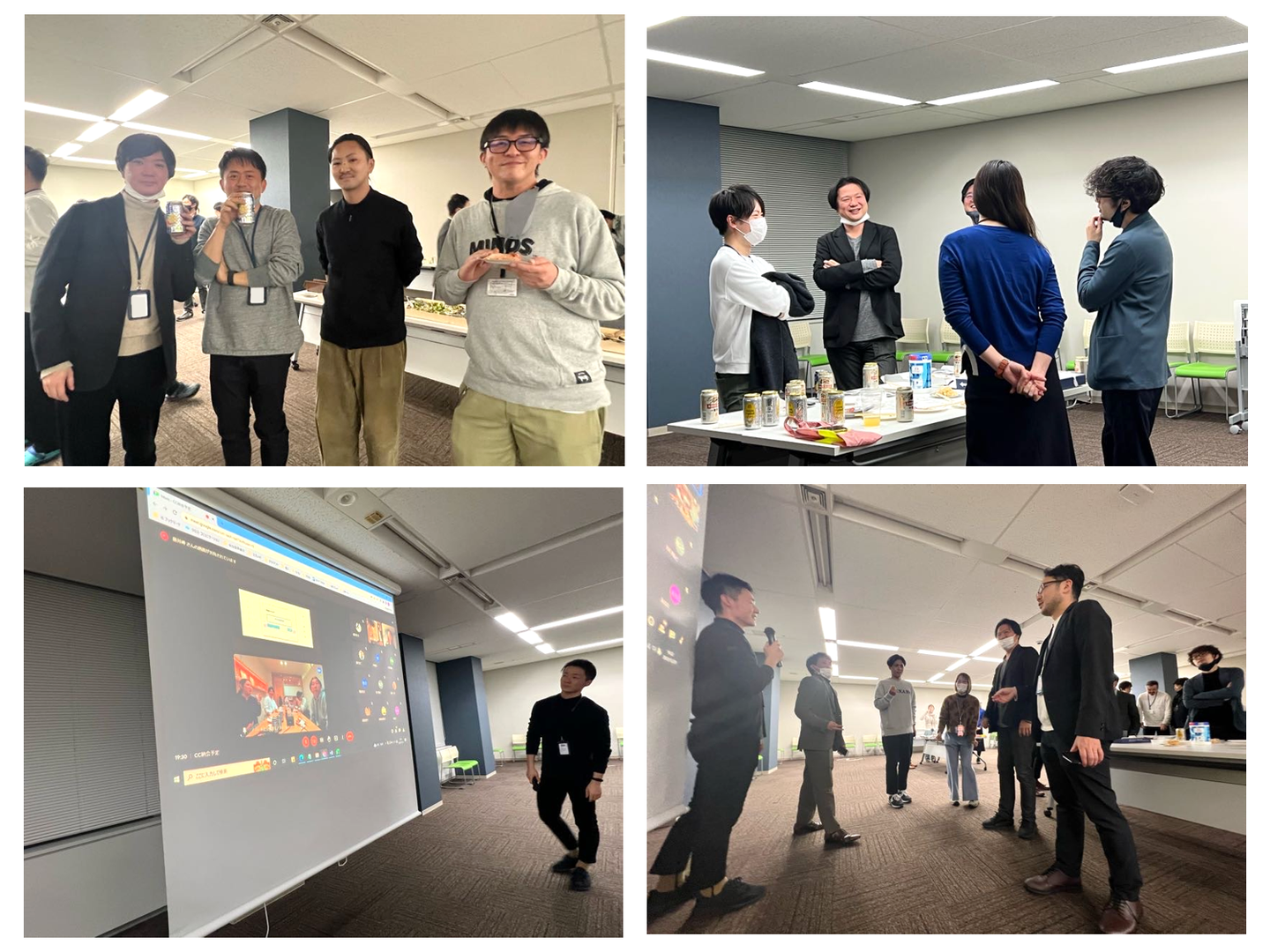 クロス・コミュニケーションでは、地方拠点の会議室(大阪・札幌・函館)や在宅勤務者ともオンラインで接続し、ハイブリット形式で忘年会を実施いたしました~