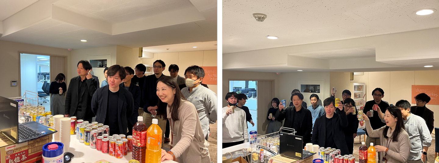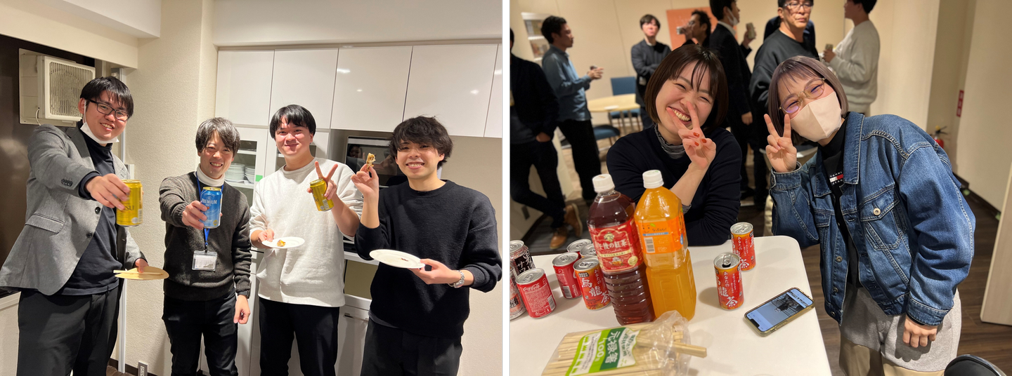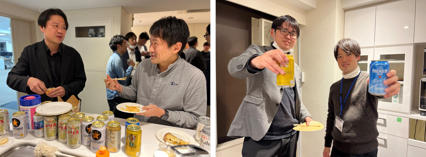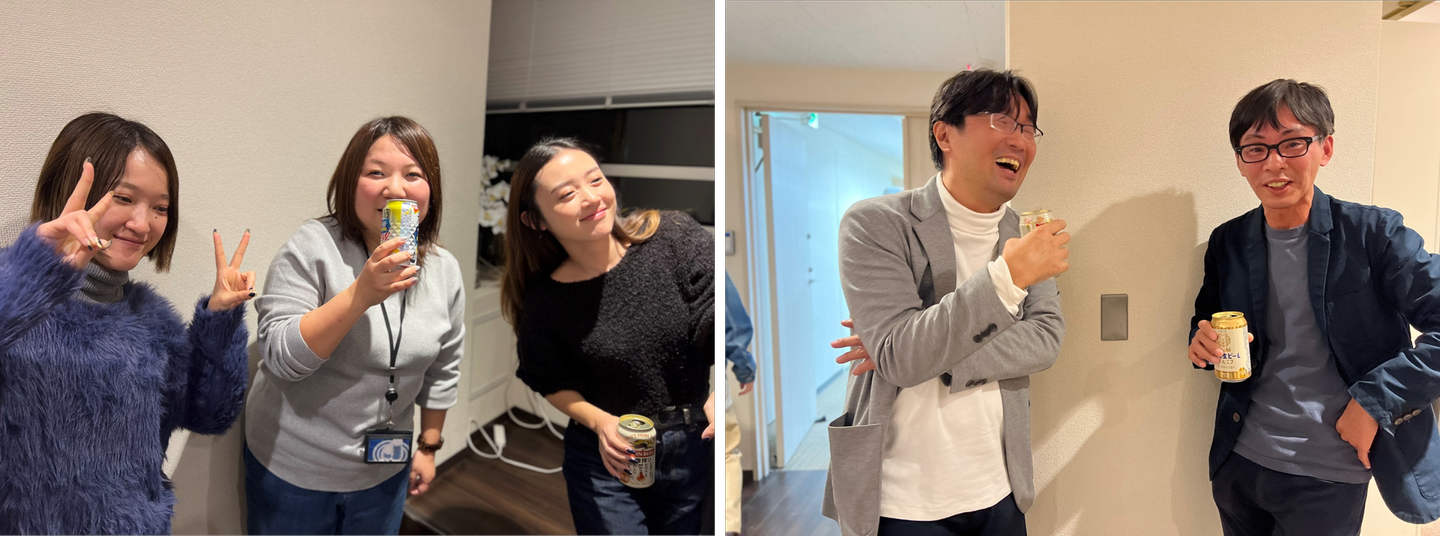 就業後なので、みなさんお酒やジュースを片手に乾杯~🍺