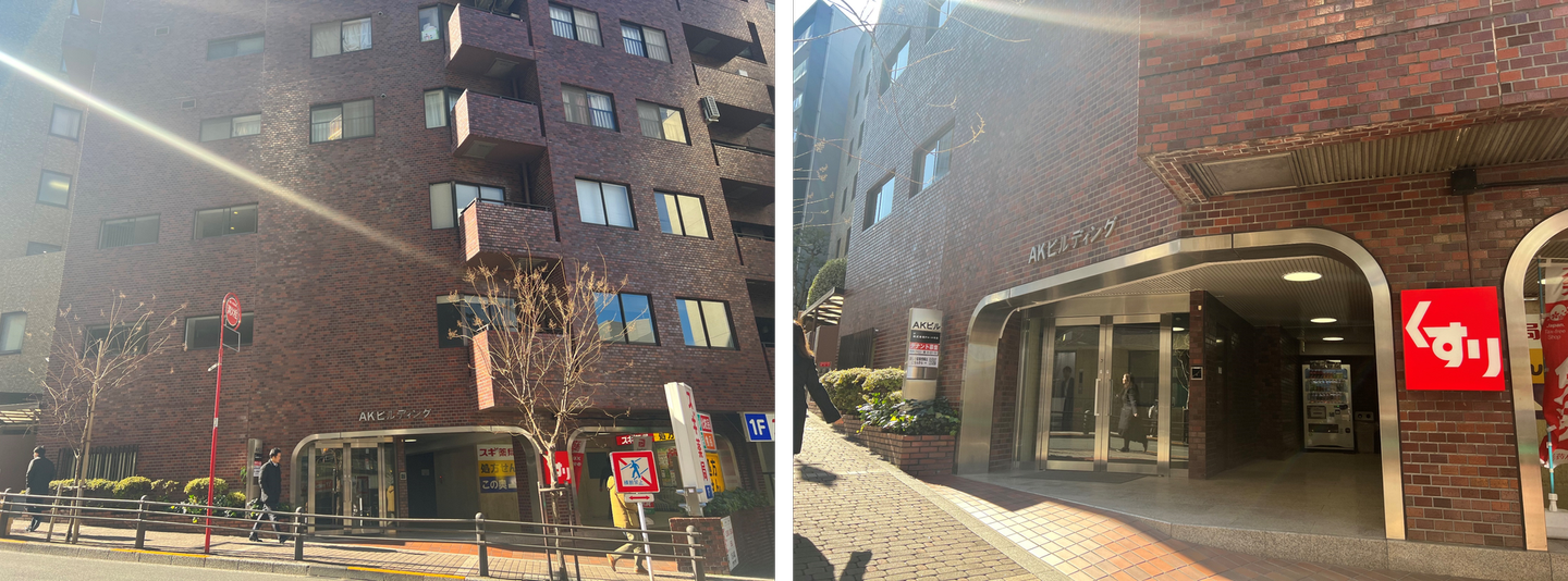 スギ薬局が1階に入るレンガ作りのビルの3階にオフィスはございます。