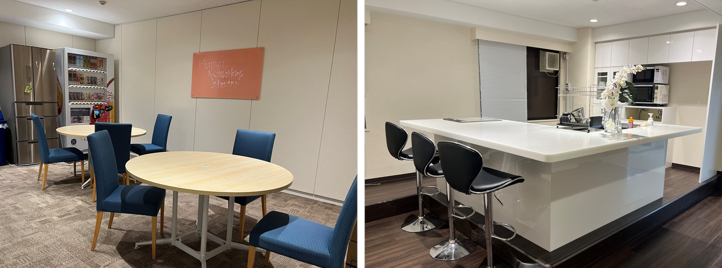 執務エリアにキッチン&カフェスペース、4つの会議室。