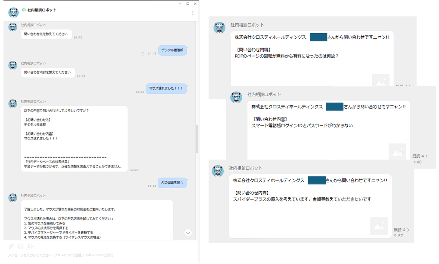 最近では、社内相談BOTを作成しまして、早期解決!対応時間削減!を目指して改良中です🐈