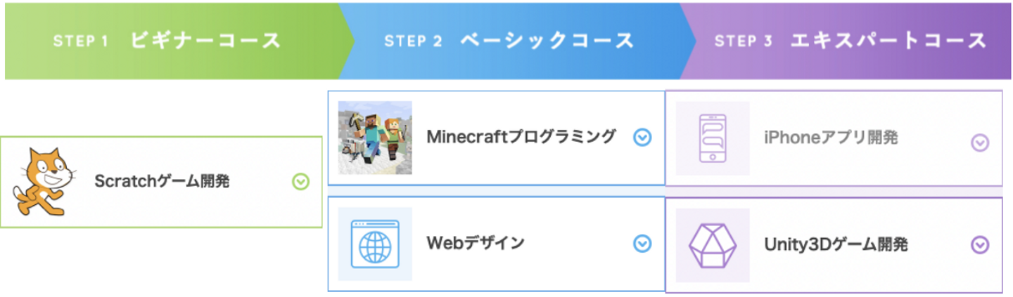 スタートプログラミングでは3つのコースがあり、それぞれ段階を経て生徒に学習してもらっています。