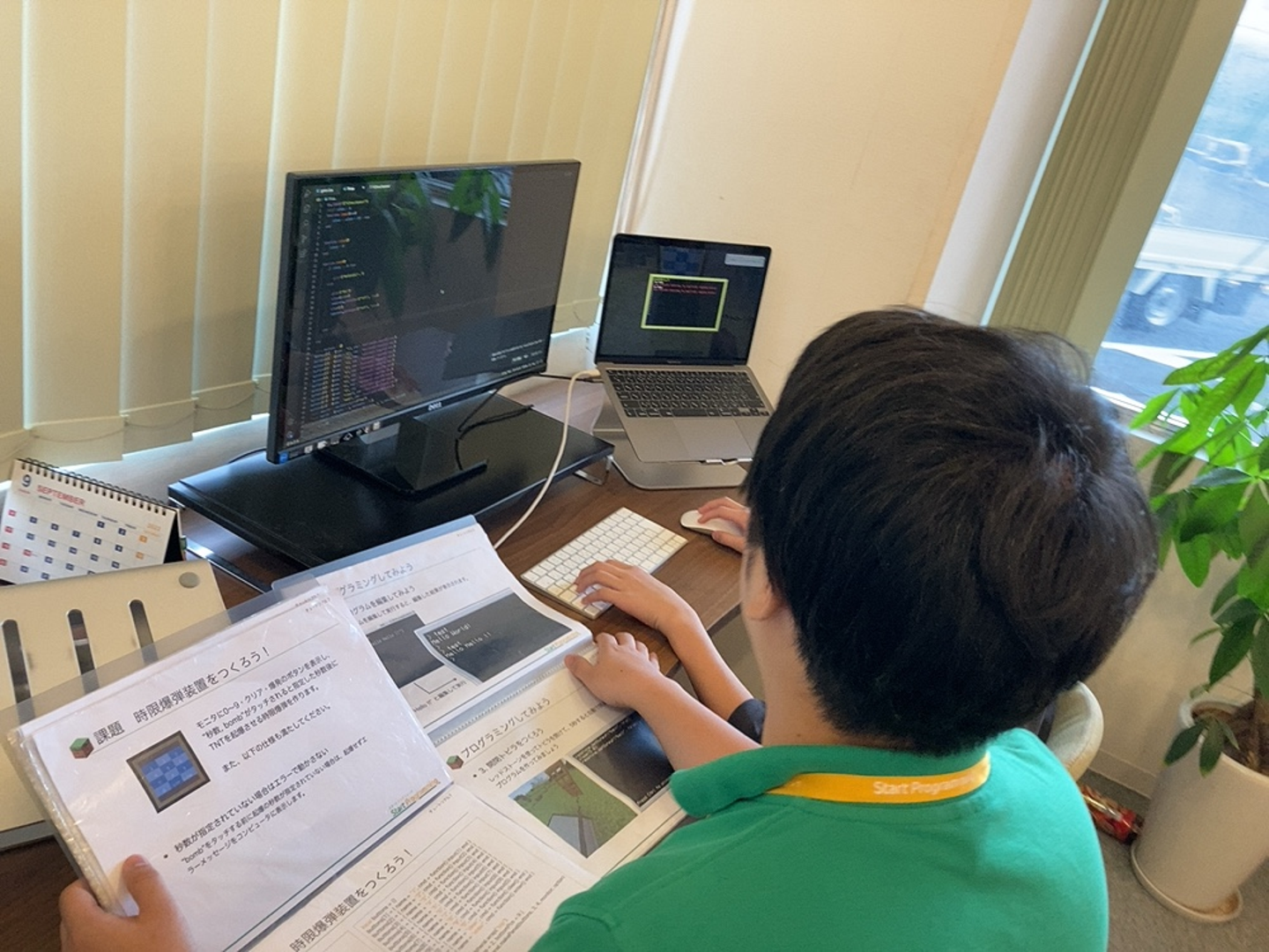 内容としては難しいものが多く、細かい仕様やプログラミングにつまづくこともありますが、以前学習したScratchで説明すると理解してくれます。