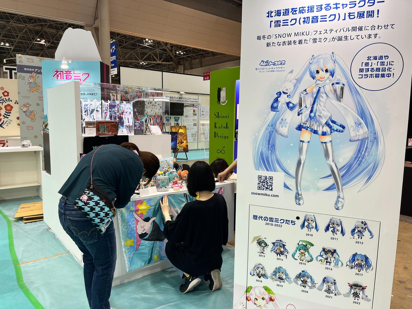 新たなグッズ化やコラボレーションの機会を作るべく、今回初出展!「初音ミク」たちのライセンサーであることが、遠目からでもしっかり伝わるブースデザインになるよう心がけました。