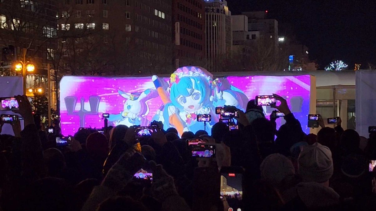 また、同会場には中雪像「雪ミク 冬麗(ふゆうらら) Ver.」も設置されており、雪まつり期間中は毎晩「SNOW MIKU 2023 音と光のスペシャルショー」も実施しておりました。こちらのショーも同じく実証実験を兼ねており、スペシャルショーの実施時間は「SNOW MIKU 2023」のイベントテーマソング『SnowMix♪』に合わせて、さっぽろテレビ塔、氷の楽器、雪像の全てが連動して色鮮やかな光で会場を盛り上げました。