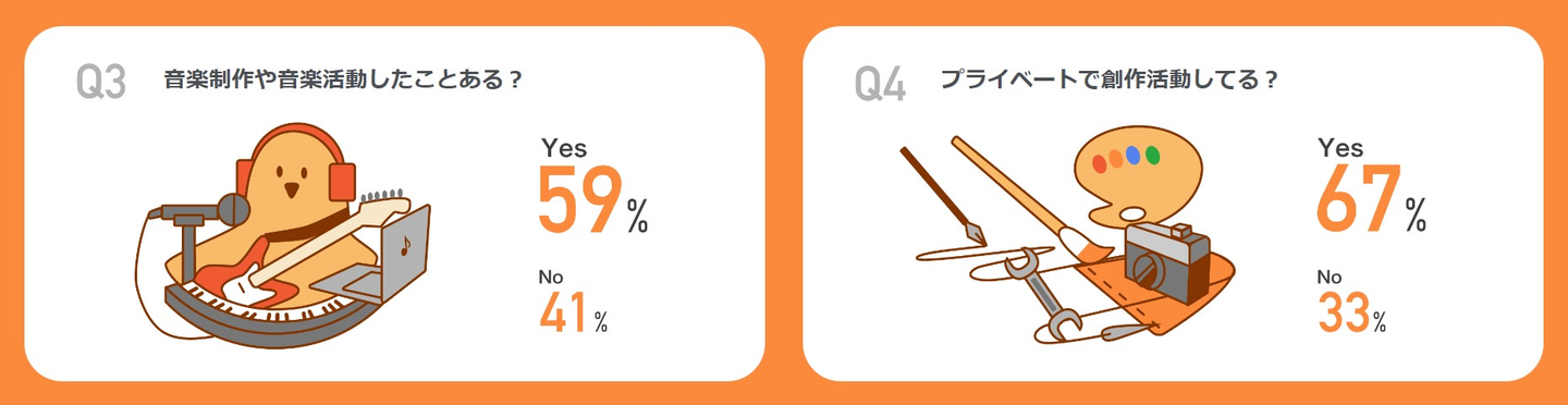 そして、当社は「音の商社」として1995年に創業した会社です。音楽制作・活動の経験者は約6割!現在も余暇の時間をつかって音楽制作をしたり、バンドや歌手としての活動に励むメンバーも少なくありません。会社にも伊藤社長のギターや初音ミクのコラボギターが数多くあります。音楽活動以外のイラストや手芸など創作活動を含めると7割近くのメンバーが創作活動をしております。