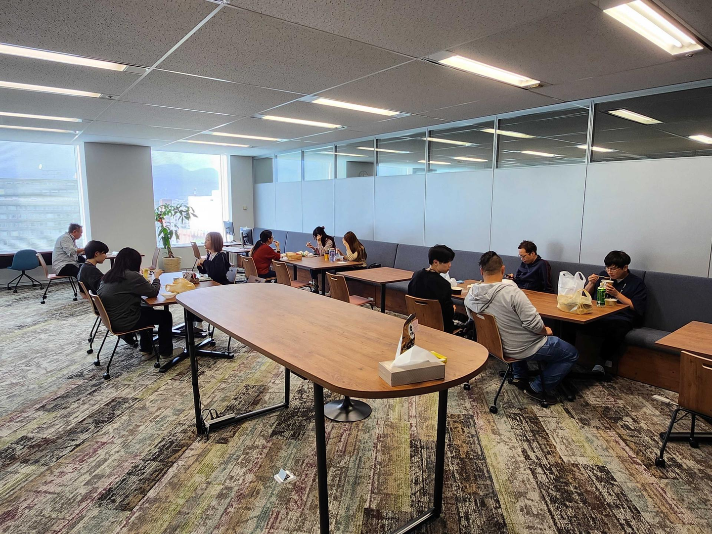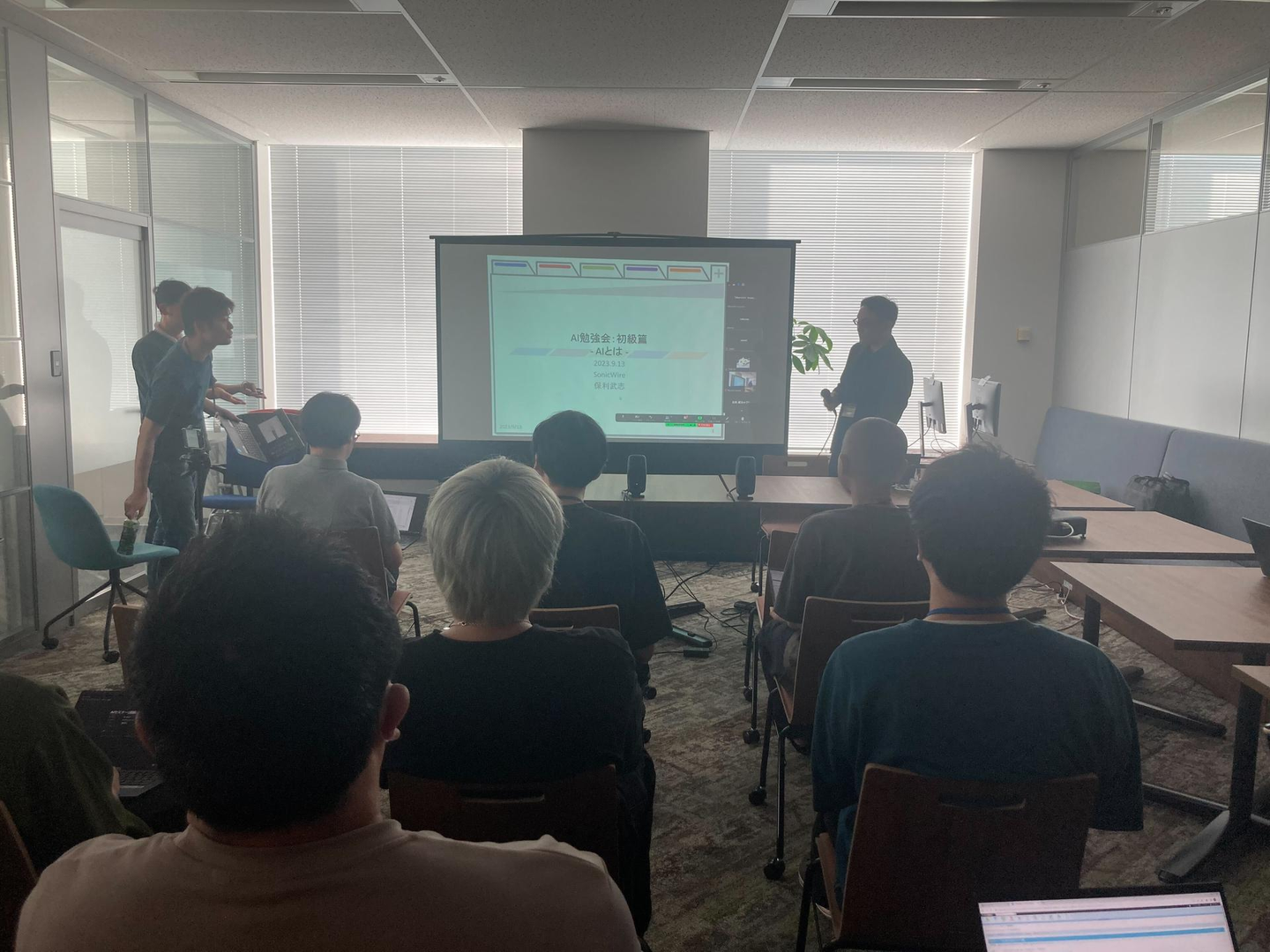 また、これまでは会議室内でしか行えなかった社内勉強会も、カフェスペースを活用できるようになりました!9月には当社のAIエンジニアによるAIに関する勉強会が開催され、AIや機械学習に関する知識の底上げを目的に、多くの参加者が集まりました。