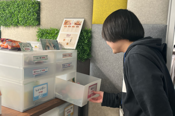 集中して作業しながらも、社内のおやつ販売を利用してリフレッシュすることも。新しく入荷したお菓子がないかチェックするのもちょっとした楽しみの1つです。