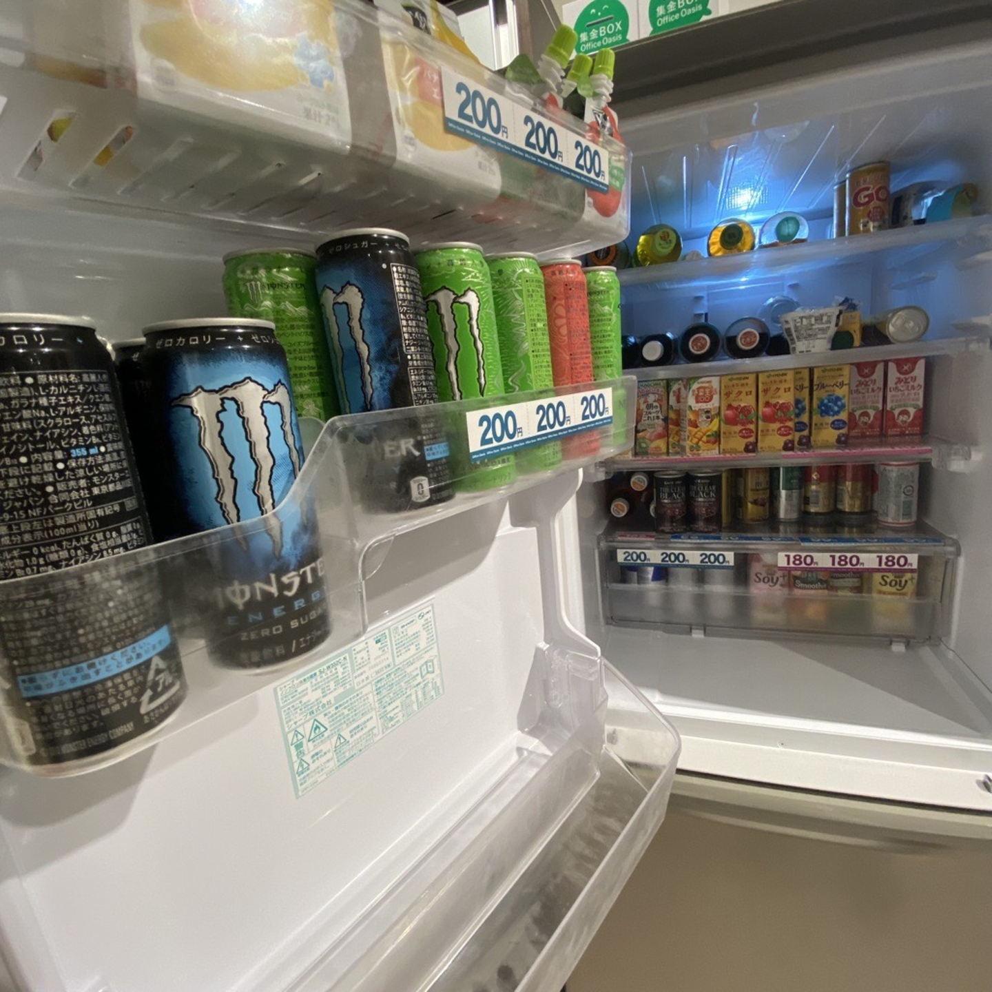若手社員リクエストのエナジードリンクや、取締役オススメのいちごミルクも揃ってます。