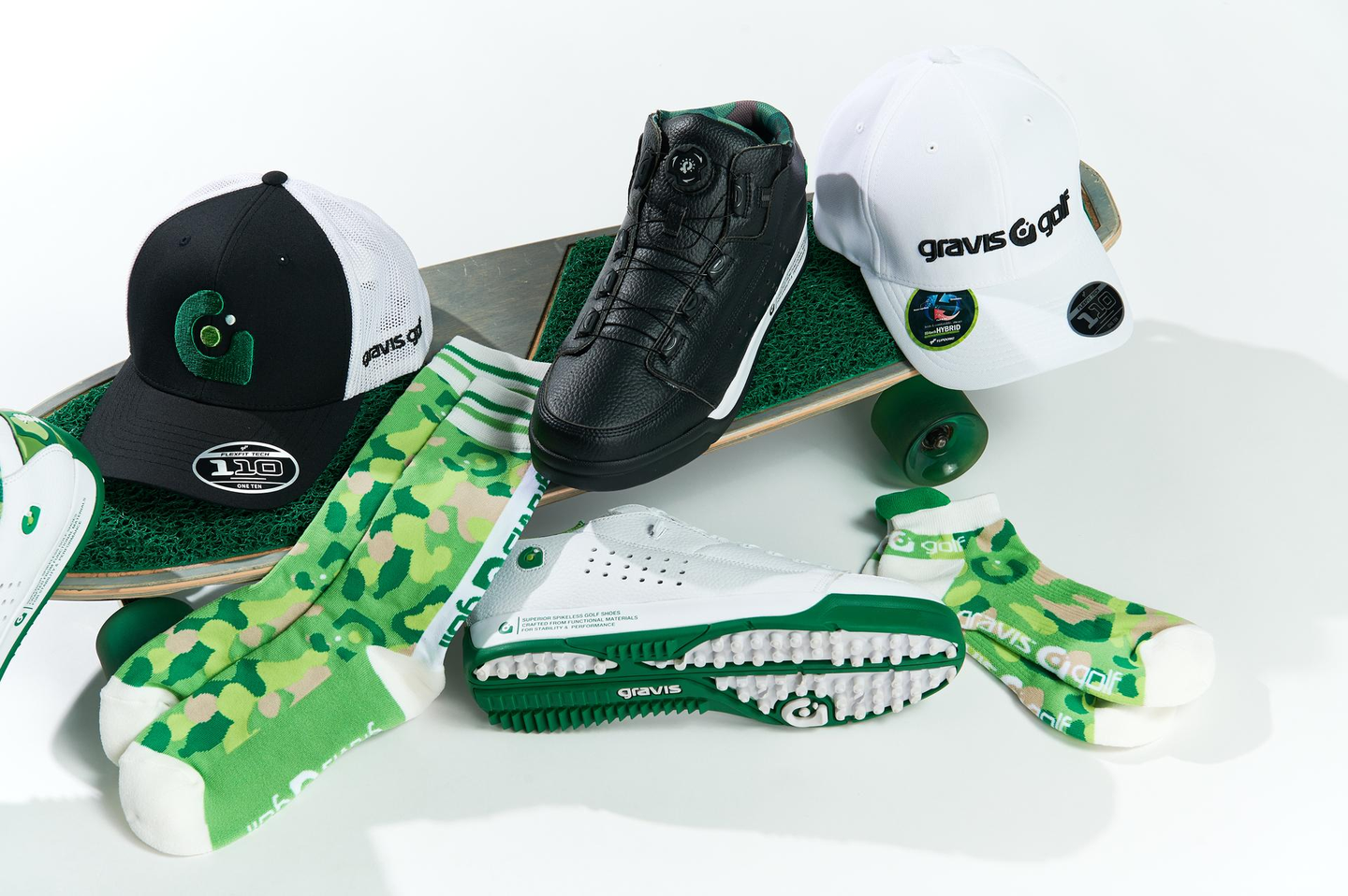 gravis golfは、アクションシーンに求められる多くの機能と一躍世界のストリートシーンを席巻したgravisのアーカイブデザインを武器に、グリーンにおけるストリートカルチャーを提案します。