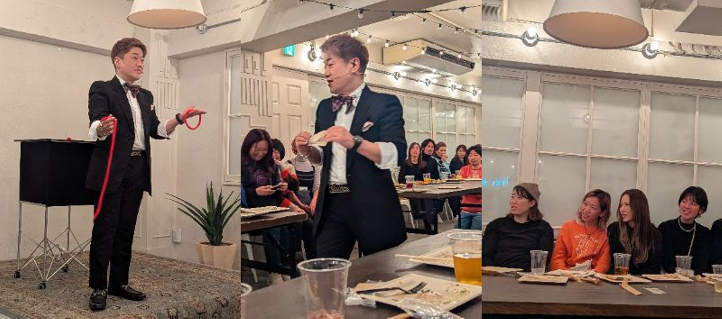 注目の中、様々なマジックが披露され、会場中に驚きと大きな歓声が何度も上がり、とっても盛り上がりました!仕掛けが全くわかりません😲