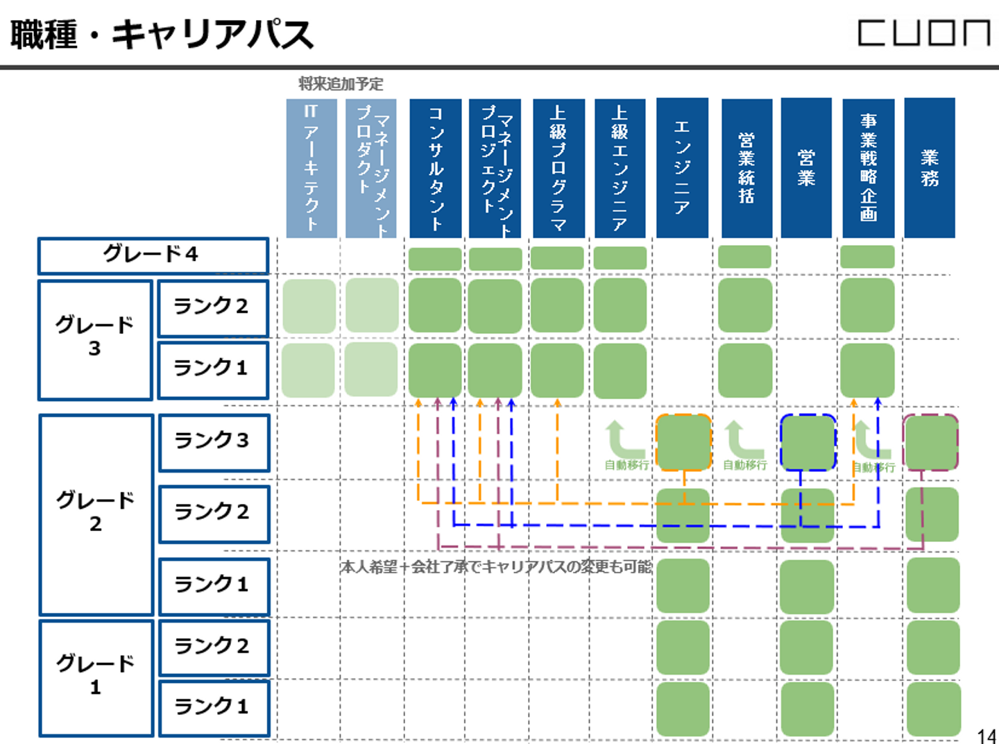 Q.Cuonには、どのようなキャリアパスがありますか?また職種ごとの役割・求めるレベル感どのようものですか?
