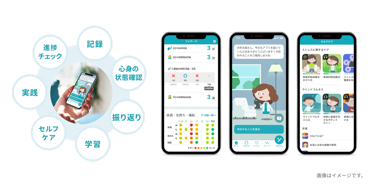 ※4:従来の治療法である医薬品などと同様に、病気の治療を目的として医師が処方する医療機器を指します。治療アプリは、治験で質の高い科学的エビデンスが示されており、国内では、飲酒量低減のほか、ニコチン依存症、高血圧、不眠症、ADHDなどの治療アプリがすでに承認されています。