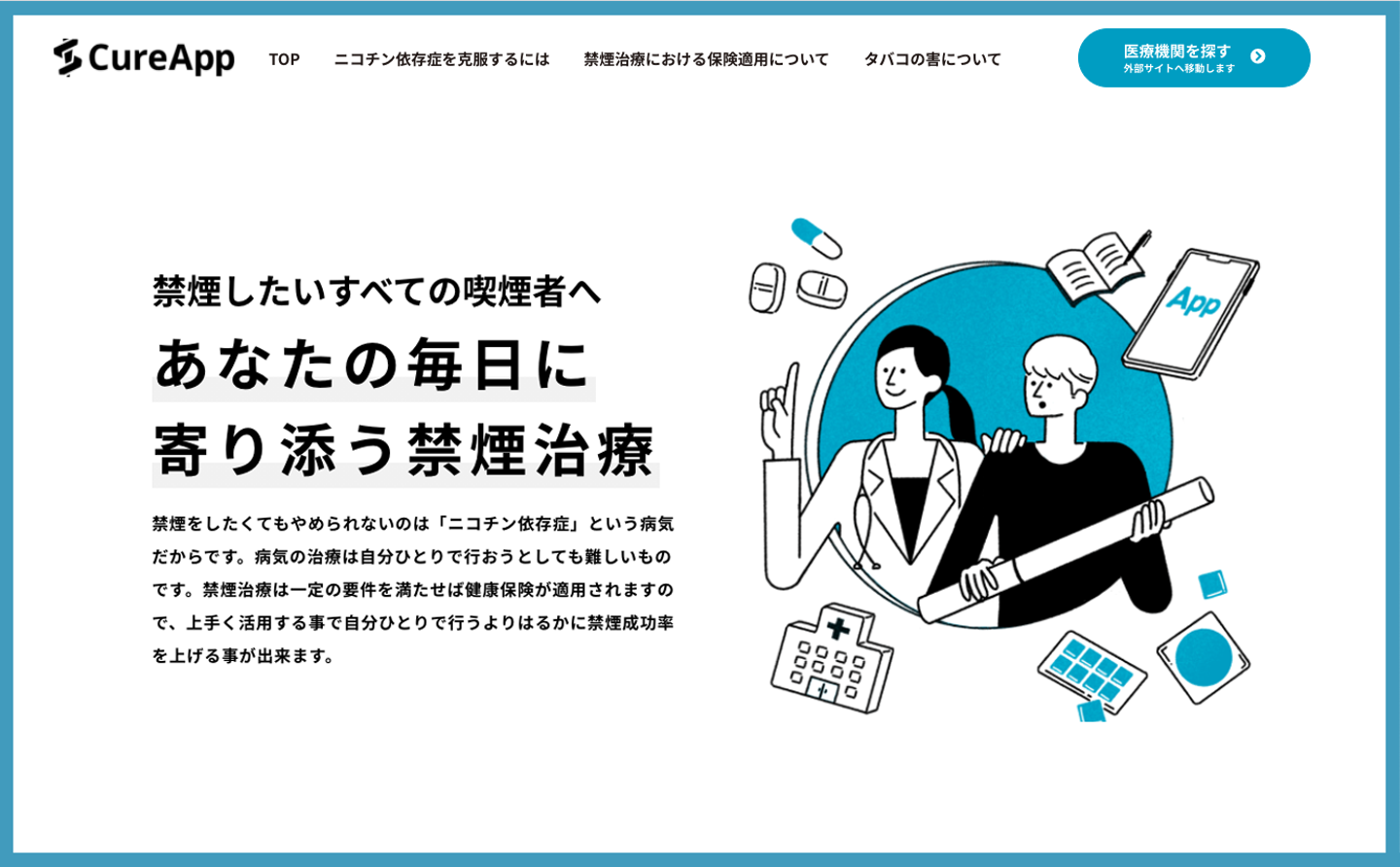 株式会社CureApp(本社:東京都中央区、代表取締役社長:佐竹晃太)は、禁煙への挑戦と成功を後押しする情報提供サイト(https://sc.cureapp.com/p/)をオープンしたことをお知らせいたします。