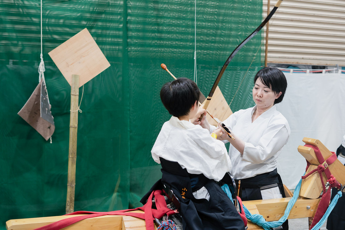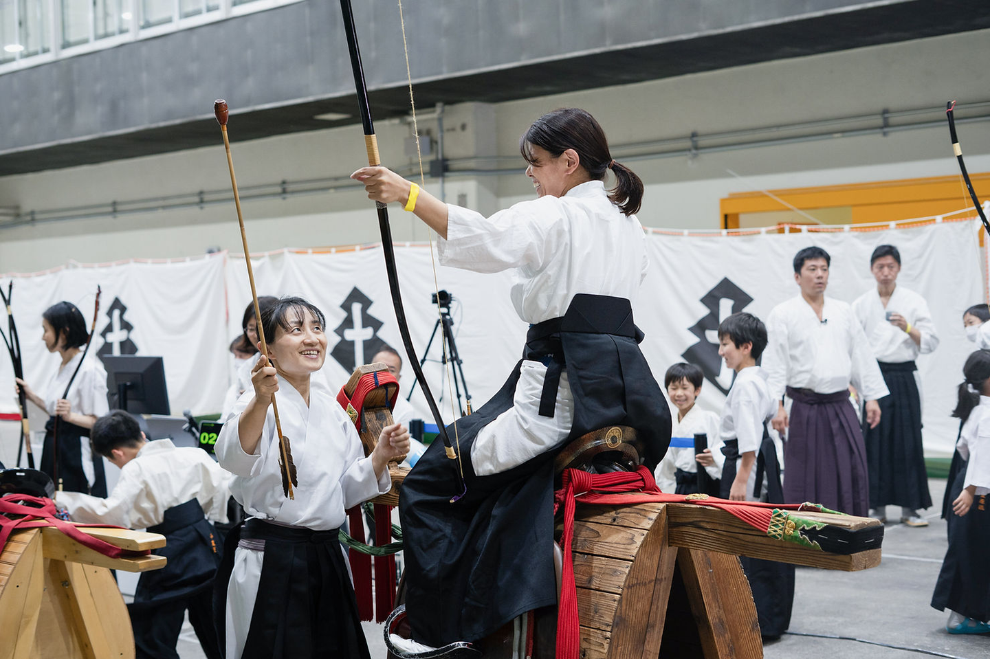 流鏑馬の場合も弓術の基本は同じです。ただし、馬に乗りながら射るので、地面に立ちながら射る歩射とは違った、身体動作を習得する必要があります。