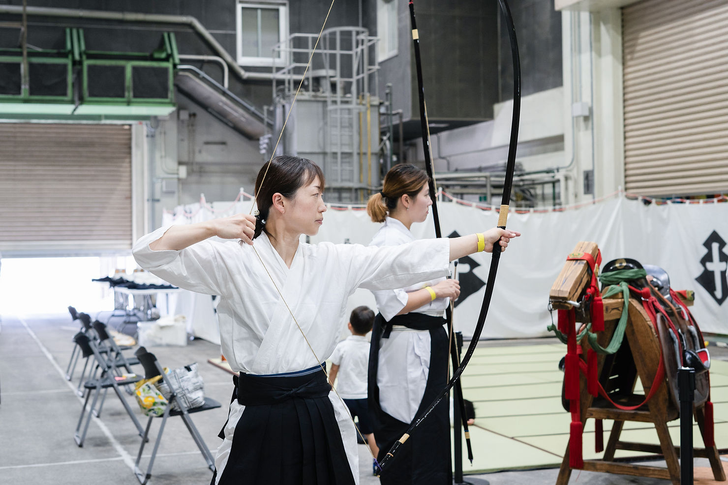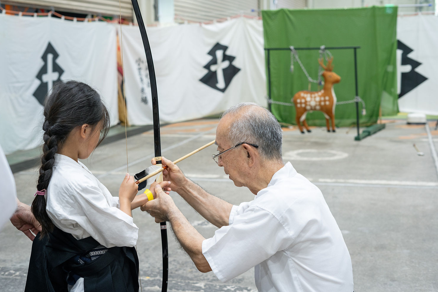 矢を番える間に、「インヨー(陰陽)」という矢声(やごう)を発するのが決まりです。非常に迫力のある実演となりました。