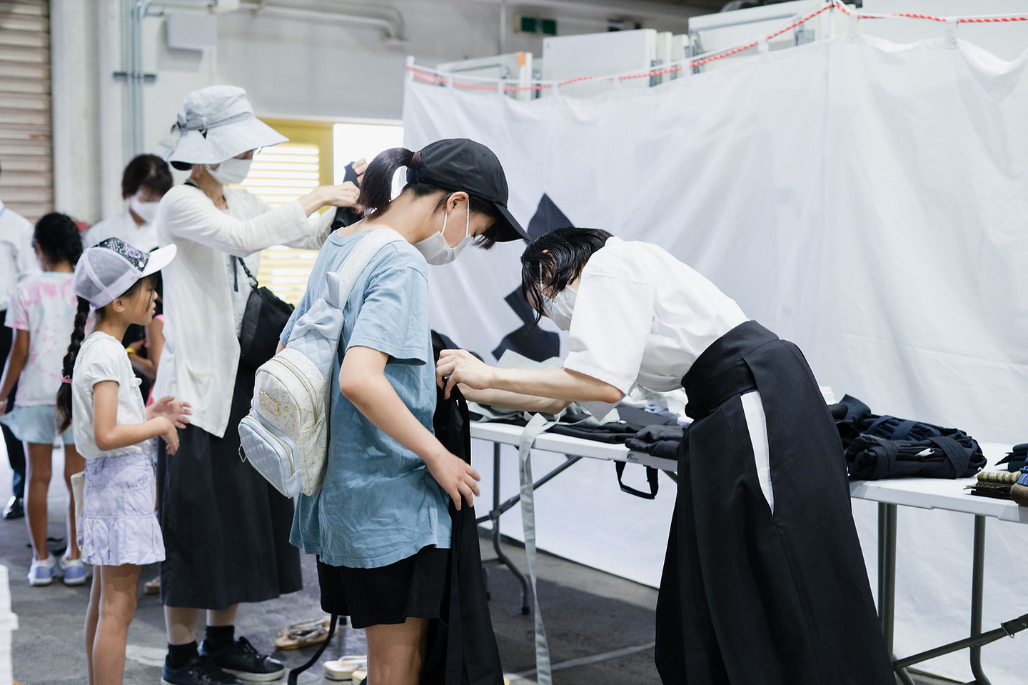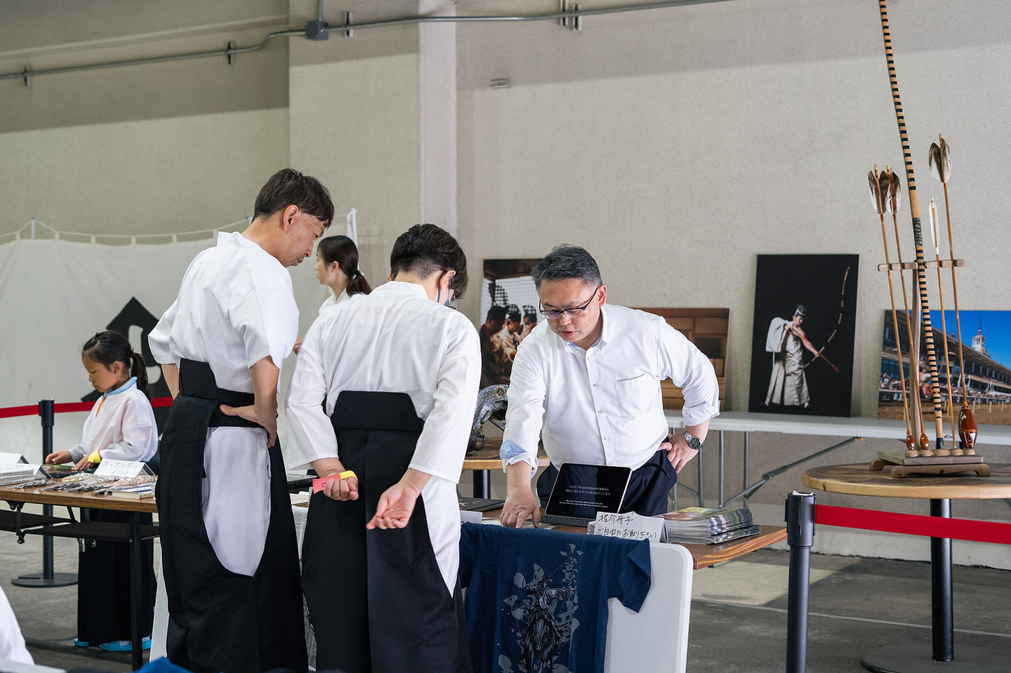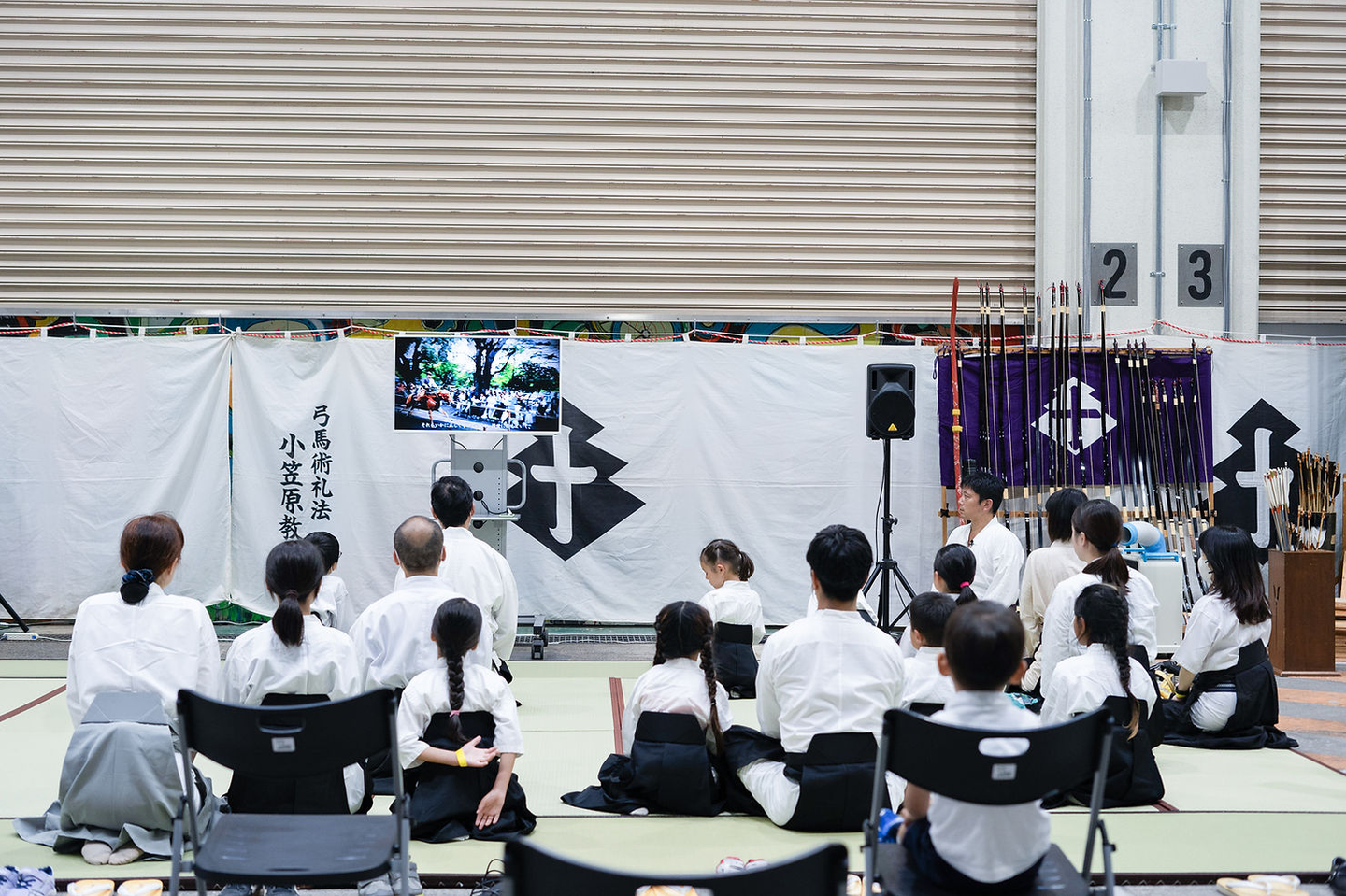 また今回は、YouTubeでのオンライン配信に加えて、どなたでもご見学可能な立ち見エリアと小笠原流に関するパネルや道具の展示スペースも会場内に開設。
