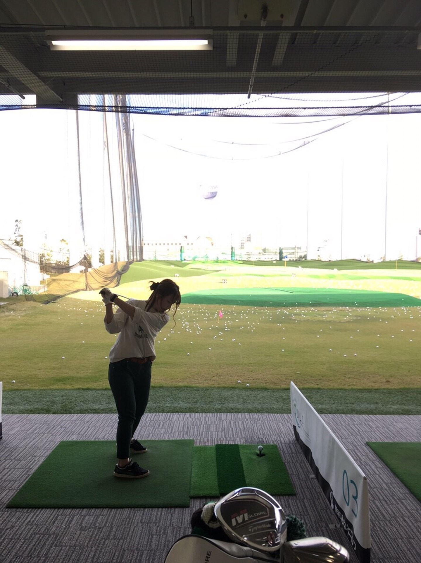 打ちっぱなしに行った日は水曜の昼間でしたが(名古屋オフィスは水曜休み!平日休みって快適イイネ)、打ちっぱなし場はほぼ満員!(満席?)ゴルフ好きはたくさんいるのです!!