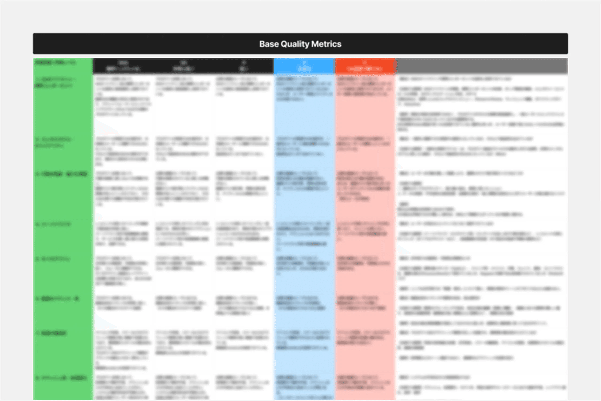 漆原:「当たり前品質」は案件毎に個別で細かく見ていったりするけど、一歩引いて「サイバーエージェントらしい品質か?」と問われると意外と言語化が難しいんですよね。なので、案件のサービス特性に依存するような品質ではなく、案件を横断しても成立するような「サイバーエージェントらしいベース品質」の定義から進めています。