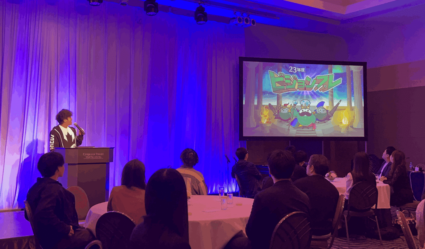 代表取締役社長 田中啓太によるビジョンプレゼンテーションの様子