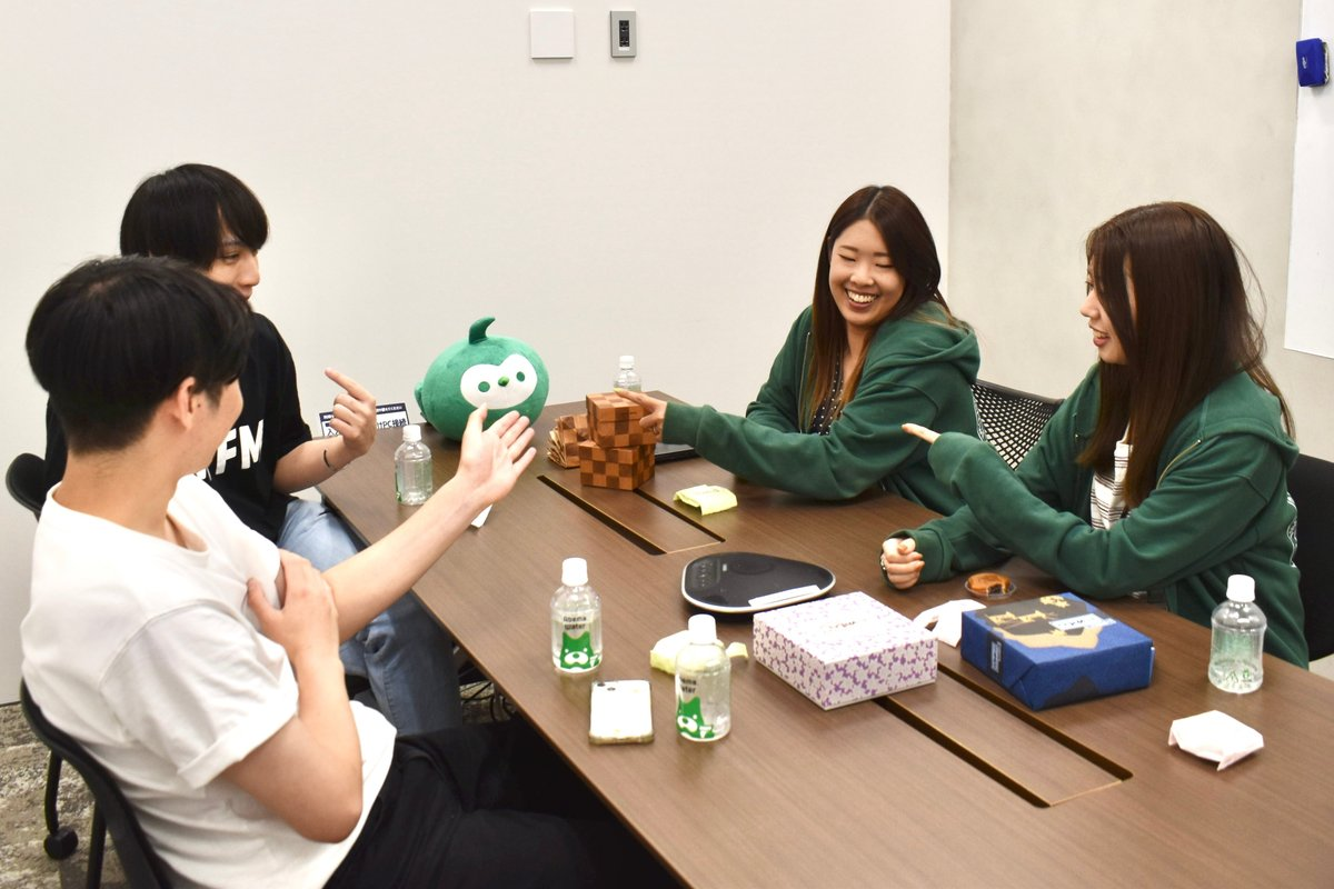 右奥から時計回りに、マーケティング事業部 マーケター・篠﨑 彩音/オウンドメディア事業部 プランナー・原屋 美里/マーケティング事業部 マーケター・成岡 佑徒/マーケティング事業部 マーケター・桶矢 寛登